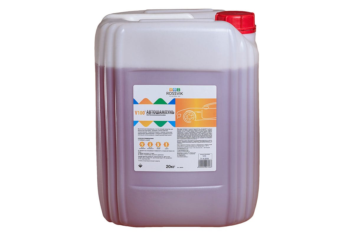 Автошампунь для бесконтактной мойки "V-100" 20 кг ROSSVIK 09020 является средством высокой концентрации, предназначенным для мытья транспорта бесконтактным способом. Имеет специально разработанный состав, что позволяет использовать его с водой высокой жесткости. Прекрасно справляется со сложными дорожными загрязнениями.
