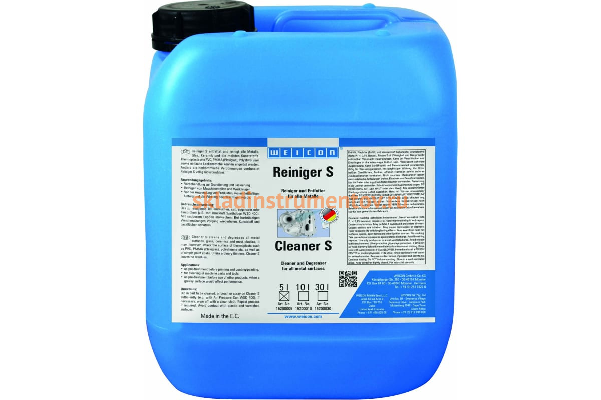 Очиститель Cleaner S 5 л WEICON wcn15200005 используется для удаления загрязнений с любых металлических поверхностей.