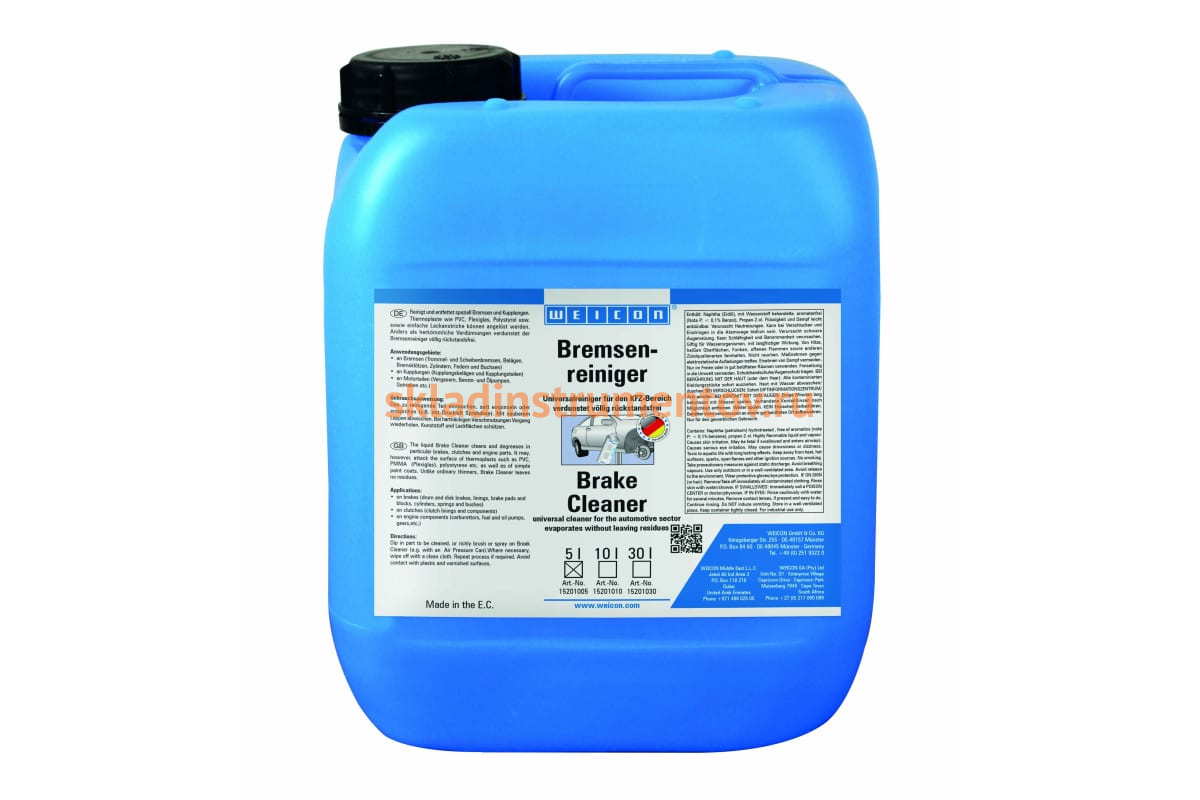 Очиститель тормозов 5 л WEICON wcn15201005 используется для повышения площади контакта тормозных дисков и колодок за счет удаления ржавчины.