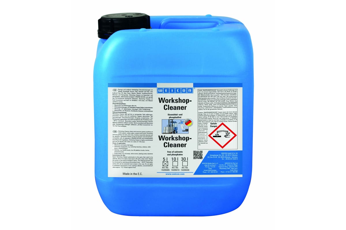 Универсальный щелочной очиститель концентрированный 1:40 5 л WEICON Workshop-Cleaner wcn15205005 для эффективного использования необходимо разводить в пропорциях 1 к 40.