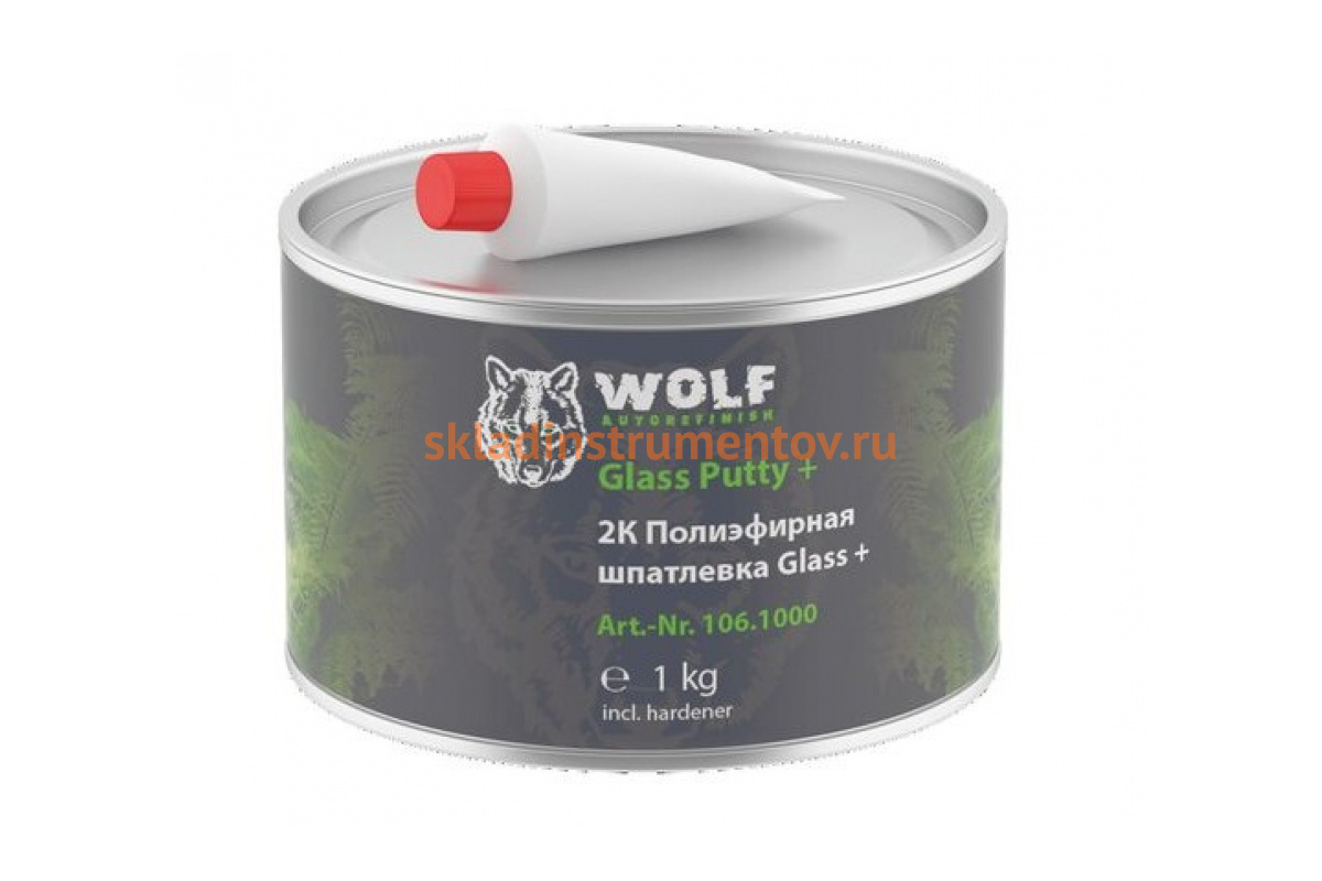 2K полиэфирная шпатлевка Glass+ 1 кг с отвердителем Wolf 106.1000 со стекловолокном используется устранения значительных неровностей и глубоких вмятин. Применяется при ремонте легковых автомобилей и коммерческого транспорта, металлоконструкций и в судостроении.