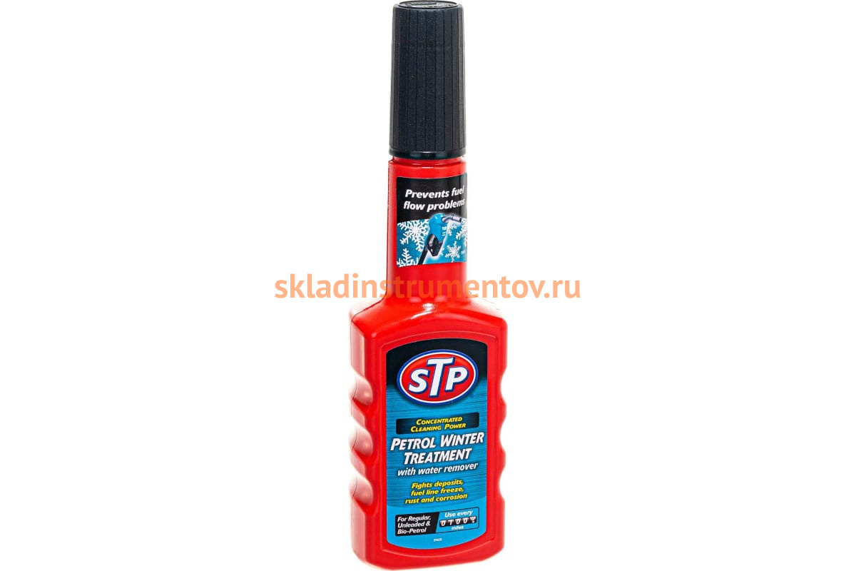 Зимняя обработка топлива с анти-гелем для бензиновых двигателей STP 200 мл 52200EN предотвращает замерзание топливопровода в зимнее время года, препятствует образование ржавчины и отходов. Входящие в состав компоненты эффективно очищают топливные форсунки. Продукт подходит для большинства двигателей, использующих обычный бензин, E5 и E10.