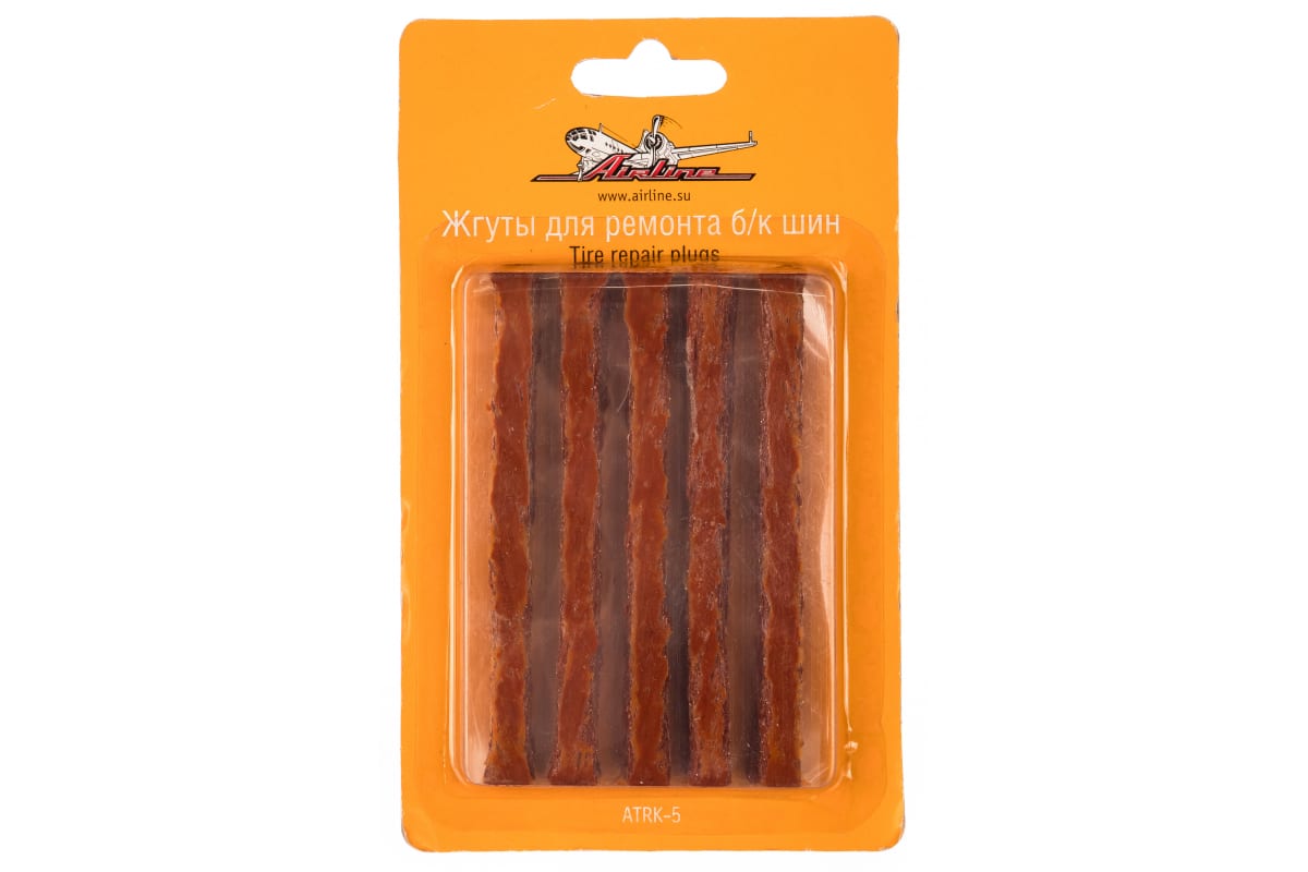 Жгуты для ремонта б/к шин в блистере (10 штук) Airline ATRK-5 используются для быстрого затыкания пробитых колес бескамерного типа. Модели изготавливаются из прочного и устойчивого к истиранию материала - сырой резины. Толщина каждого жгута составляет 6 мм, длина - 100 мм.