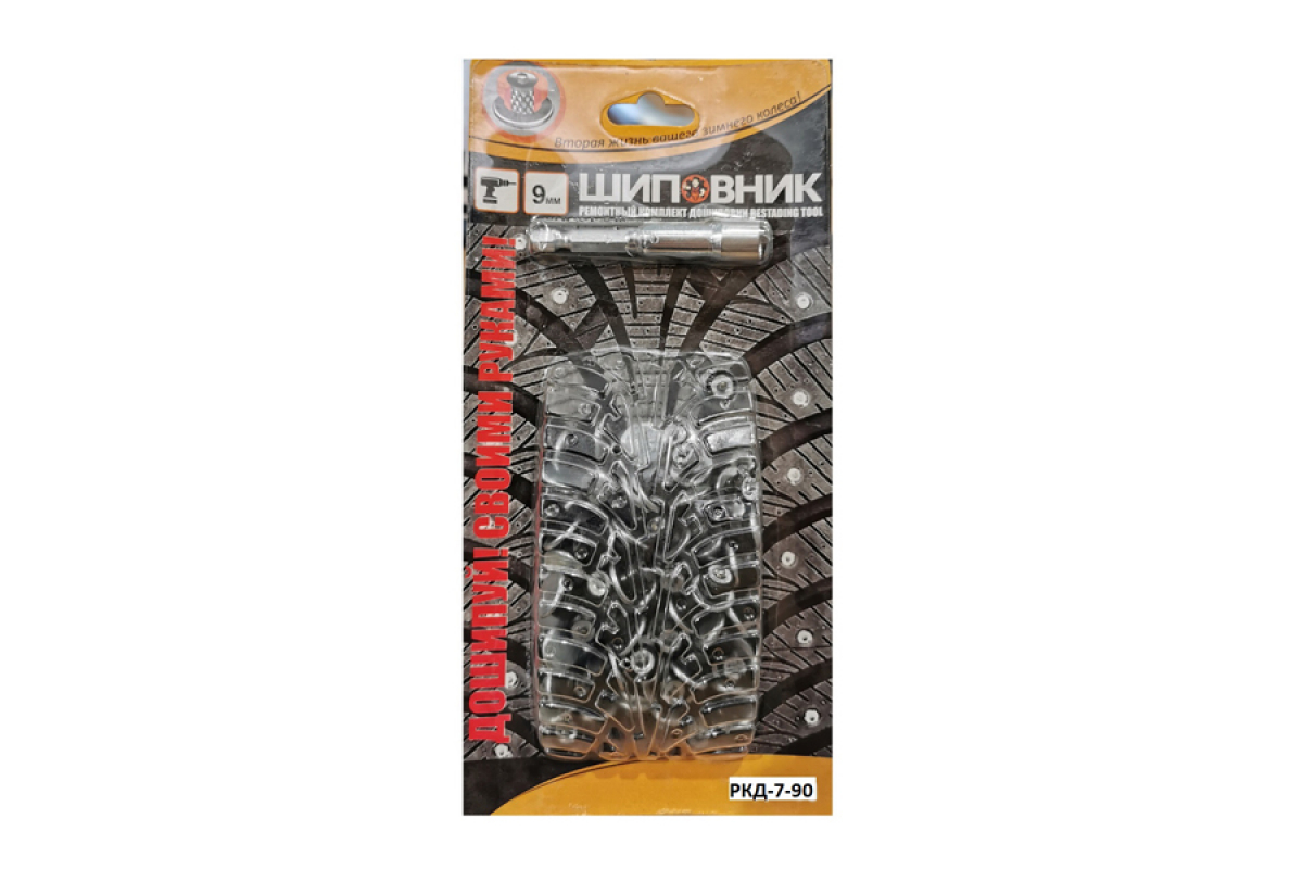 Ремонтный комплект дошиповки ROSSVIK РКД-7-90 позволяет самостоятельно монтировать ремонтные шипы. Установка происходит при помощи шуруповерта или сетевой дрели. Длина ремонтного шипа – 7 мм.