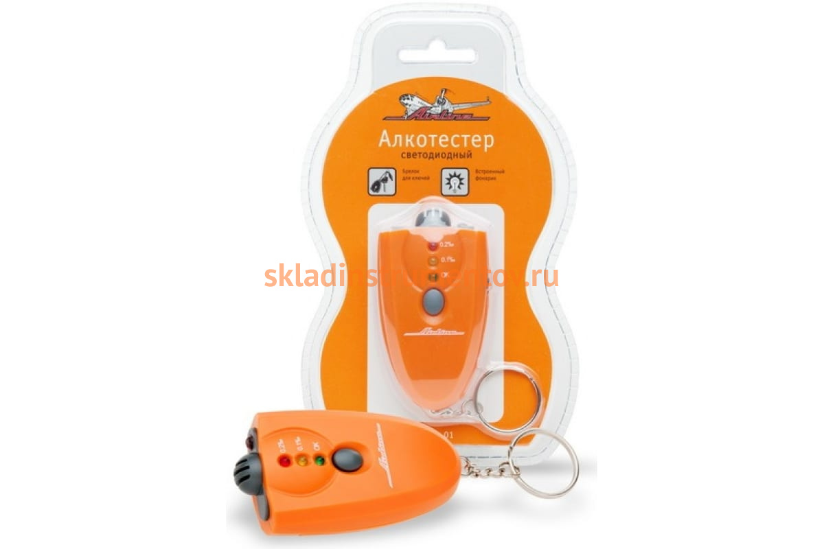 Светодиодный алкотестер Airline ALK-L-01 предназначен исключительно для персонального использования. Служит для измерения уровня содержания алкоголя в выдыхаемом воздухе. Диапазон измерений составляет от 0 до 1,9 промилле. Данные отображаются с помощью встроенных светодиодов. Процесс измерения производится бесконтактным методом, то есть нет необходимости в приобретении расходных материалов в виде мундштуков. Аппарат имеет полупроводниковый сенсор, который обеспечивает высокоточные результаты. Алкотестер выполнен в форме брелока, дополнительно оснащен фонариком. Питание осуществляется от двух батареек типа ААА.