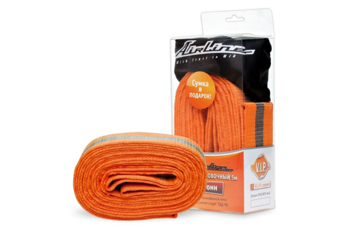 Буксировочный трос без крюков, с сумкой (VIP, лента, 7 т, 5 м) Airline ATR-P-7 имеет прочные прошитые петли, которые способны выдерживать высокую нагрузку. Модель используется для транспортирования машины весом не более 7 тонн. Современный синтетический материал (полиэфир) обеспечивает изделию морозо- и влагостойкость.