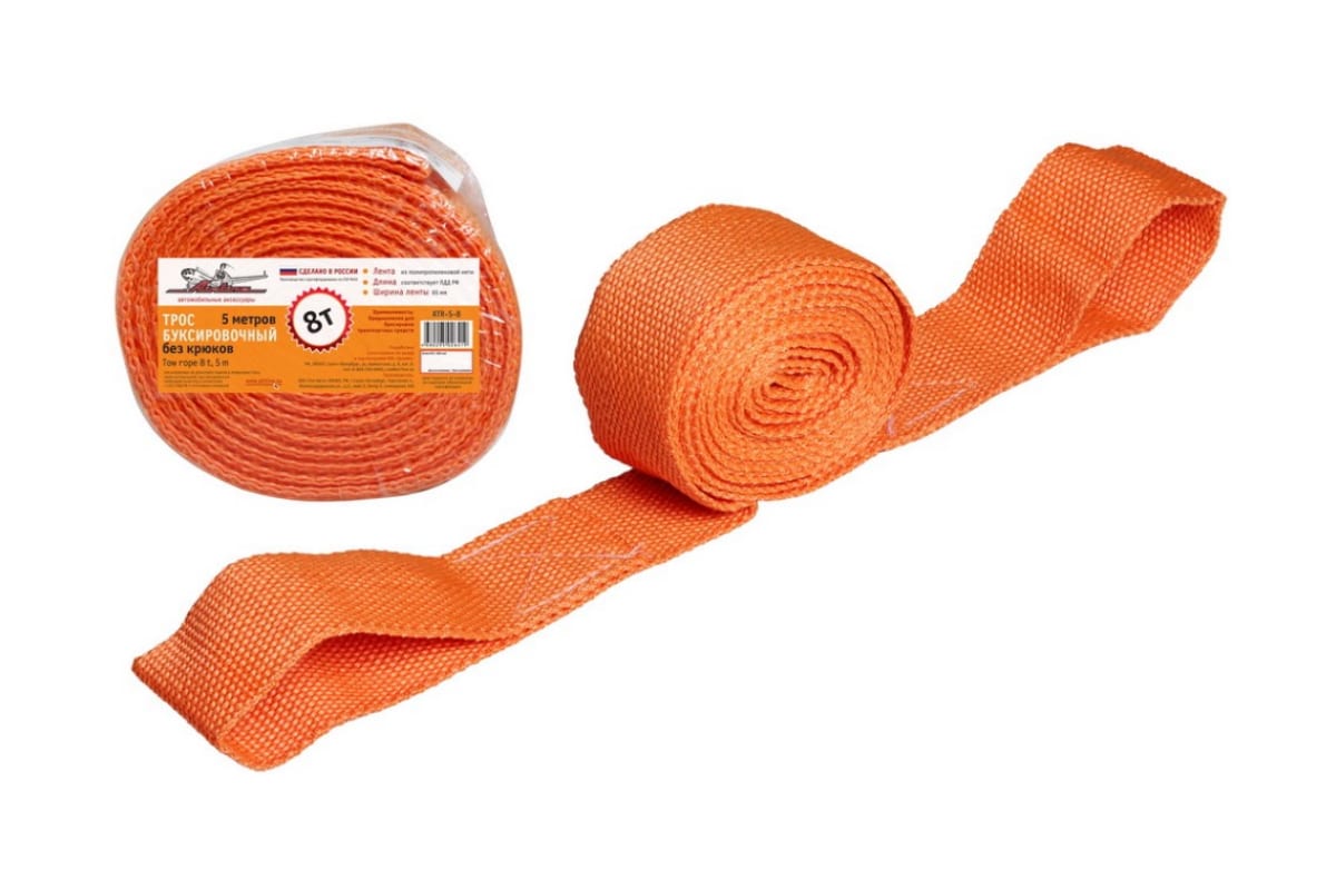 Буксировочный трос (лента 8 т, 5 м, без крюков) Airline ATR-S-8 выполнен из полипропилена. Морозо- и влагостойкая лента успешно эксплуатируется в различных погодных условиях. Длина изделия соответствует нормам ПДД РФ. В основе долговечного троса лежит лента шириной 65 мм.