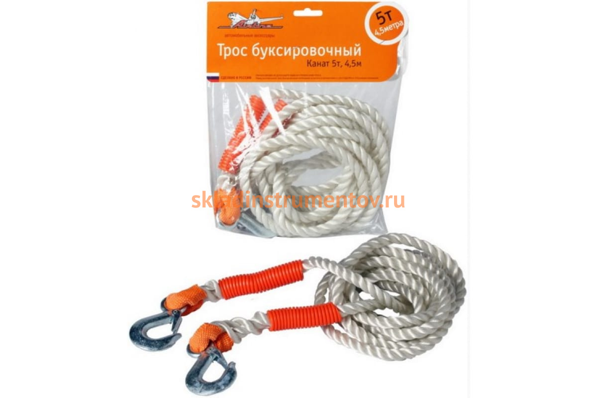 Буксировочный трос (канат, 5 т, 4.5 м, 2 крюка) Airline ACA-02 - это простое приспособление для перемещения неисправного транспорта. Модель из полипропиленовой нити не деформируется, не разрушается под воздействием влаги, не теряет своих эксплуатационных характеристик на морозе. Скобы крюков исключают случайное отстегивание троса от автомобиля.