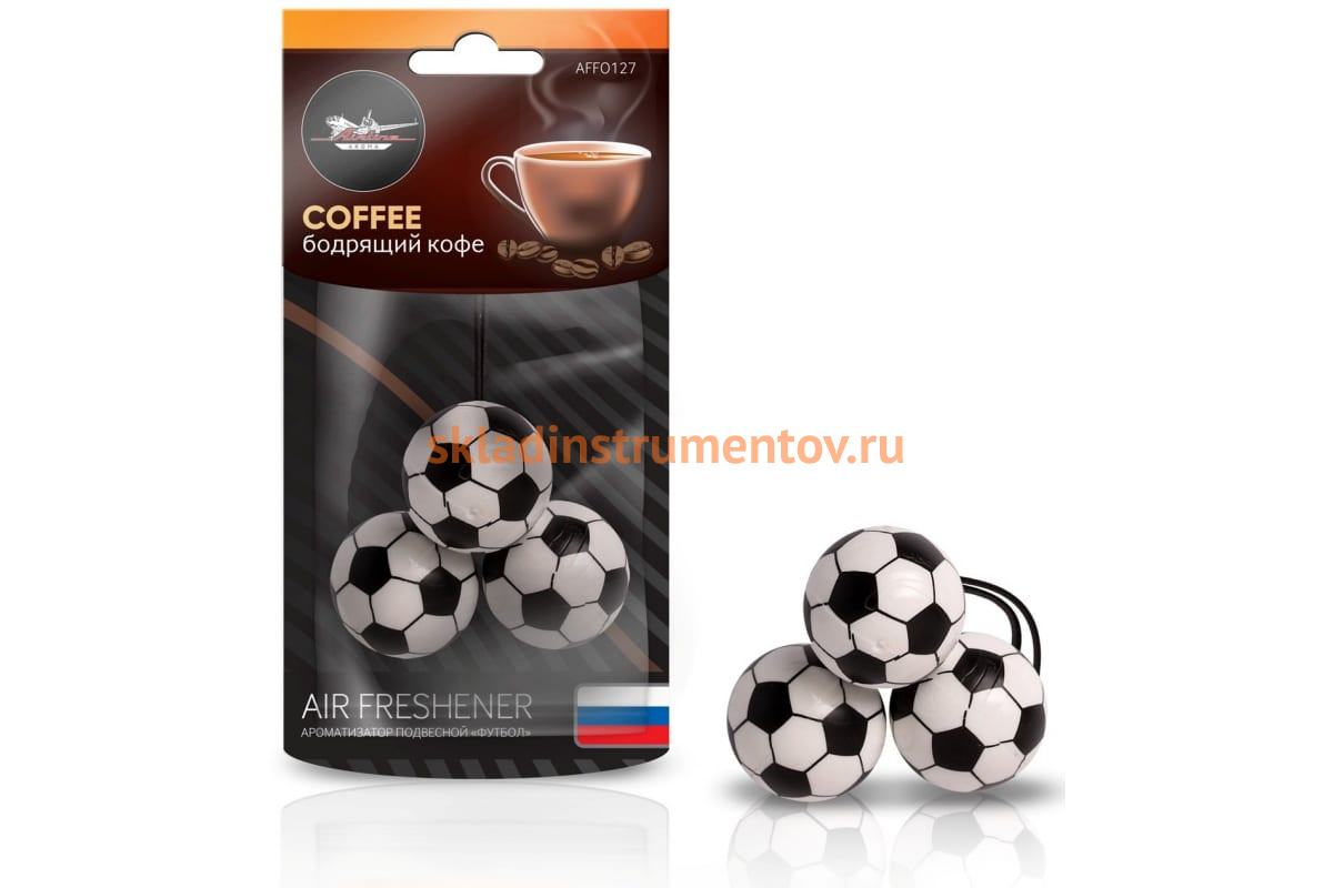 Подвесной ароматизатор Airline Футбол бодрящий кофе AFFO127 используется в качестве освежителя воздуха в салоне автомобиля.