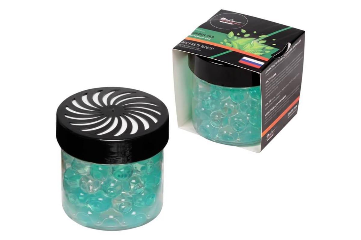 Ароматизатор-банка с гелевыми шариками Airline зеленый чай AFSH184 поможет взбодриться и освежиться благодаря тонкому и легкому аромату. Может устанавливаться в подстаканнике или на панели приборов. Объем - 100 мл.