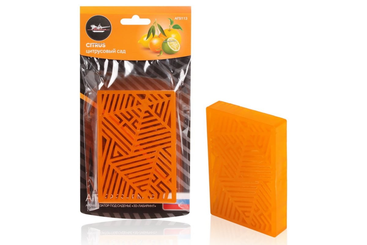 Ароматизатор под сиденье Airline 3D-лабиринт цитрусовый сад AFSI113 эффективно устраняет неприятные запахи. Аромат цитрусового сада дарит ощущение радости и счастья.