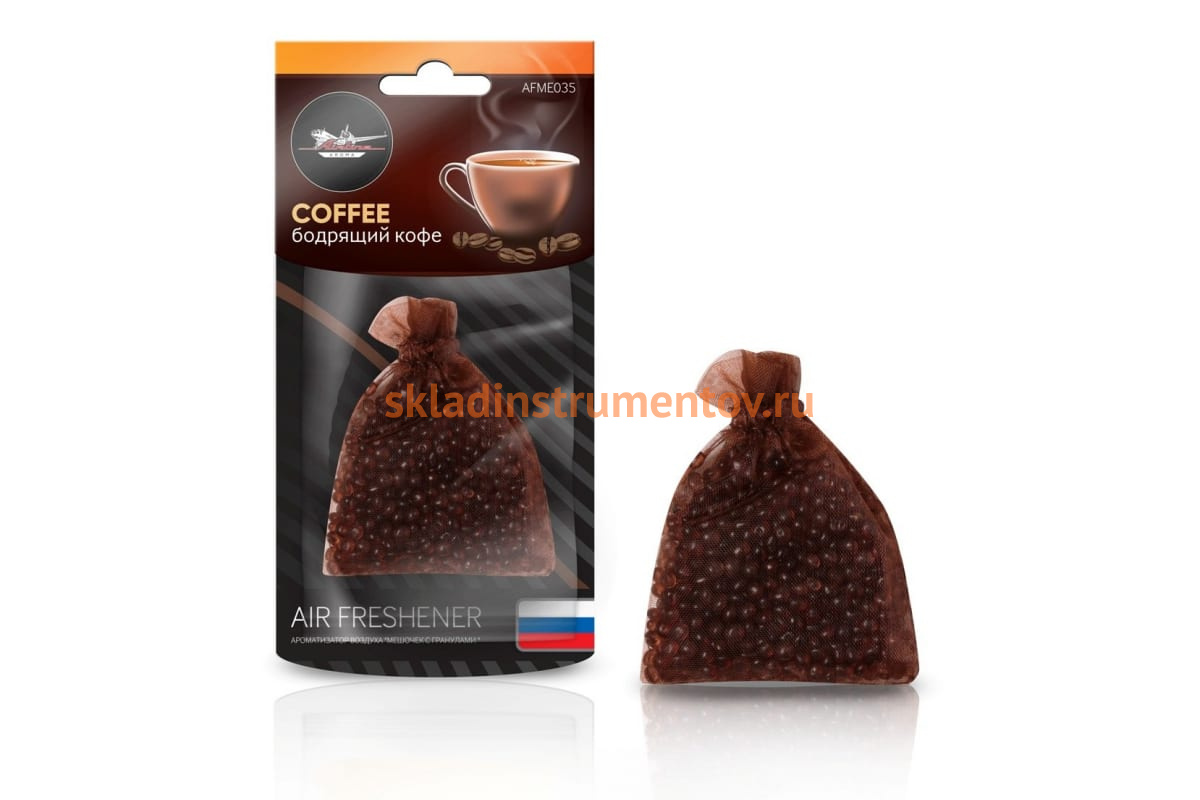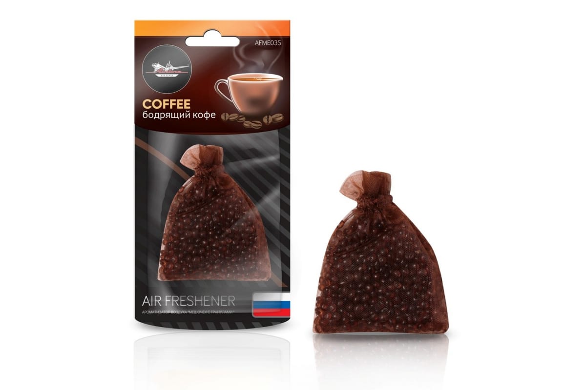 Подвесной ароматизатор Airline Мешочек с гранулами бодрящий кофе AFME035 освежает запах в салоне автомобиля.