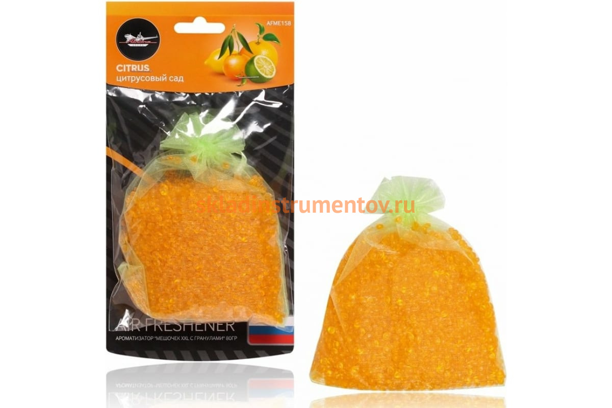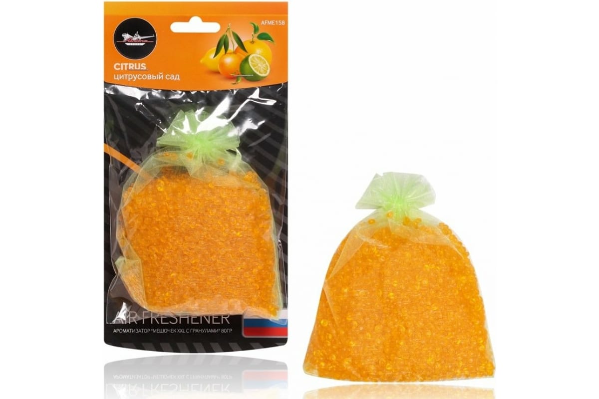 Ароматизатор Airline Мешочек XXL с гранулами 80г, цитрусовый сад AFME158 можно подвесить около зеркала заднего вида, положить под сиденье, либо в любое другое место. Его аромат обладает бодрящим эффектом, дарит ощущение радости и счастья.