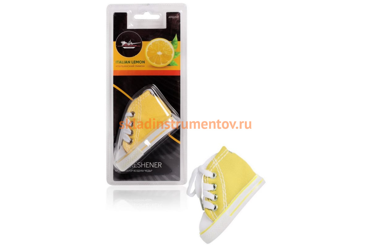 Подвесной ароматизатор Airline Кеды итальянский лимон AFKE050 освежает запах в салоне автомобиля.