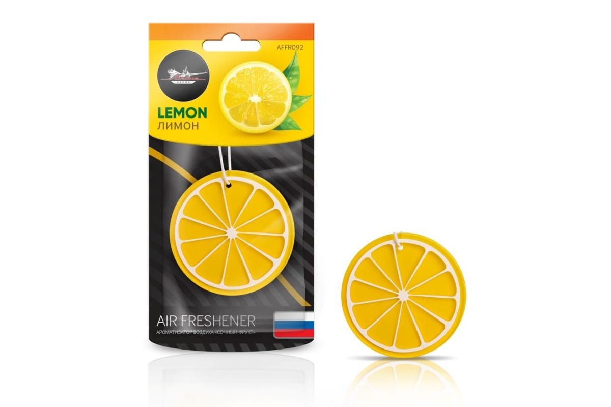 Подвесной ароматизатор Airline Сочный фрукт лимон AFFR092 имеет яркий дизайн.