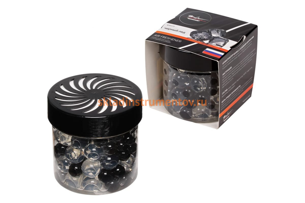Ароматизатор-банка с гелевыми шариками Airline черный лед AFSH177 имеет строгий и свежий аромат мужского парфюма. Может устанавливаться в подстаканнике или на панели приборов. Объем - 100 мл.
