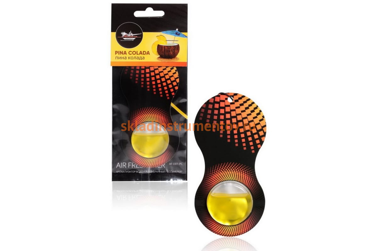 Подвесной ароматизатор Airline Восьмерка, пина колада AF-D01-PC отличается необычной формой и яркой расцветкой. Состоит из пластикового блистера с гелевой основой. Наполняет салон автомобиля ярким и летним ароматом с оттенками ананаса, кокоса и светлого рома.