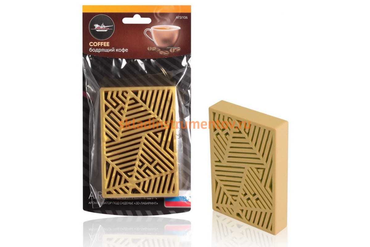 Ароматизатор под сиденье Airline 3D-лабиринт бодрящий кофе AFSI106 эффективно устраняет неприятные запахи. Аромат свежесваренного кофе дарит ощущение тепла и уюта.