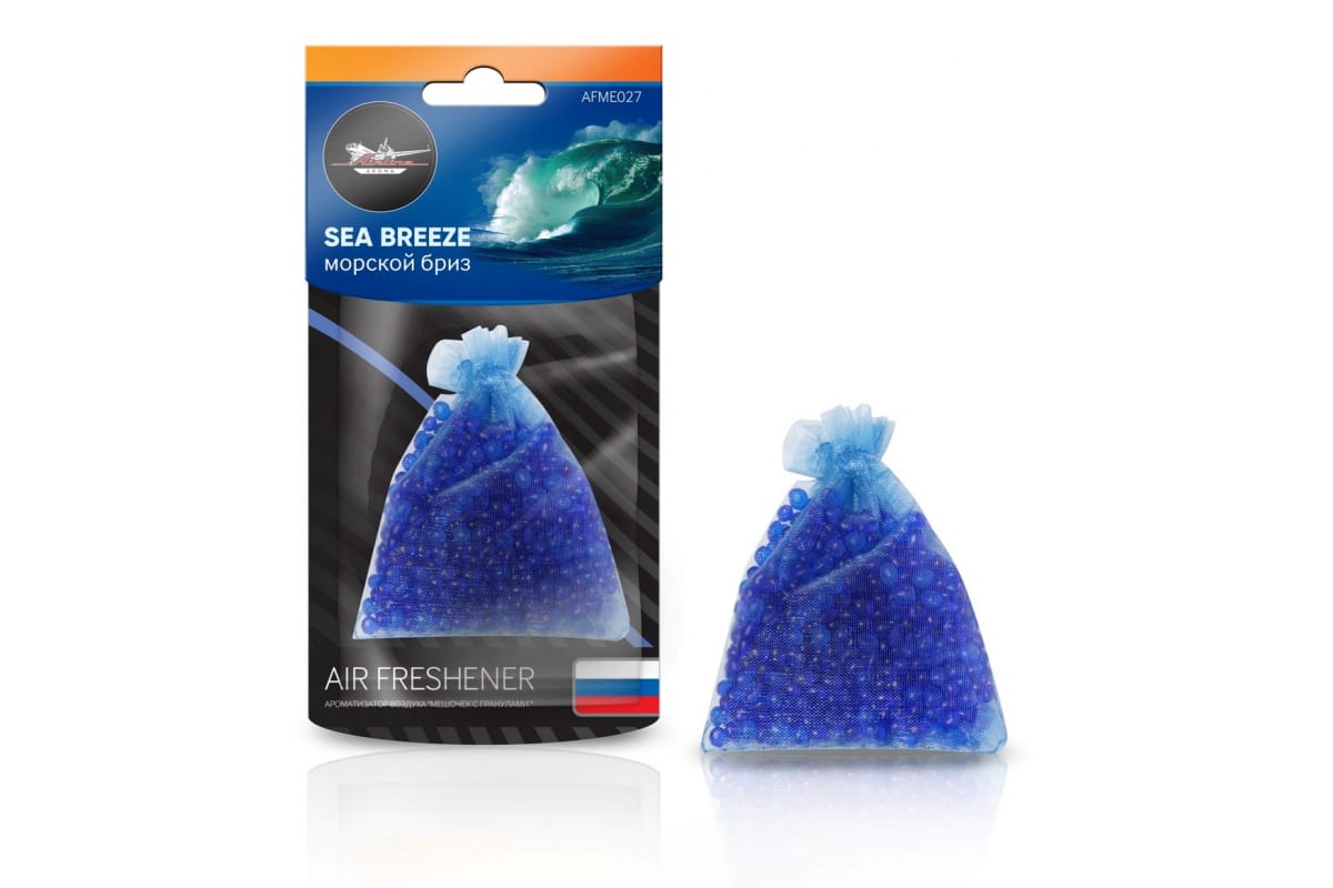 Подвесной ароматизатор Airline Мешочек с гранулами морской бриз AFME027 освежает запах в салоне автомобиля.