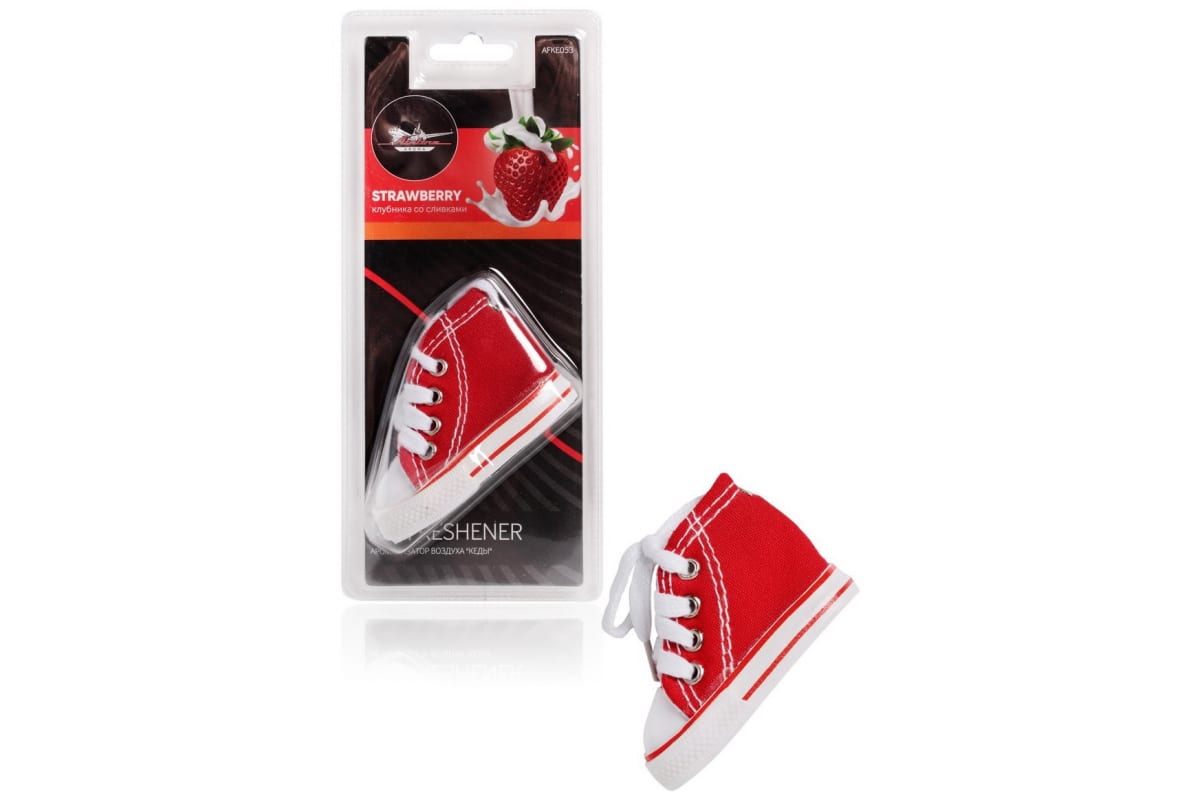 Подвесной ароматизатор Airline Кеды клубника со сливками AFKE053 освежает запах в салоне автомобиля.