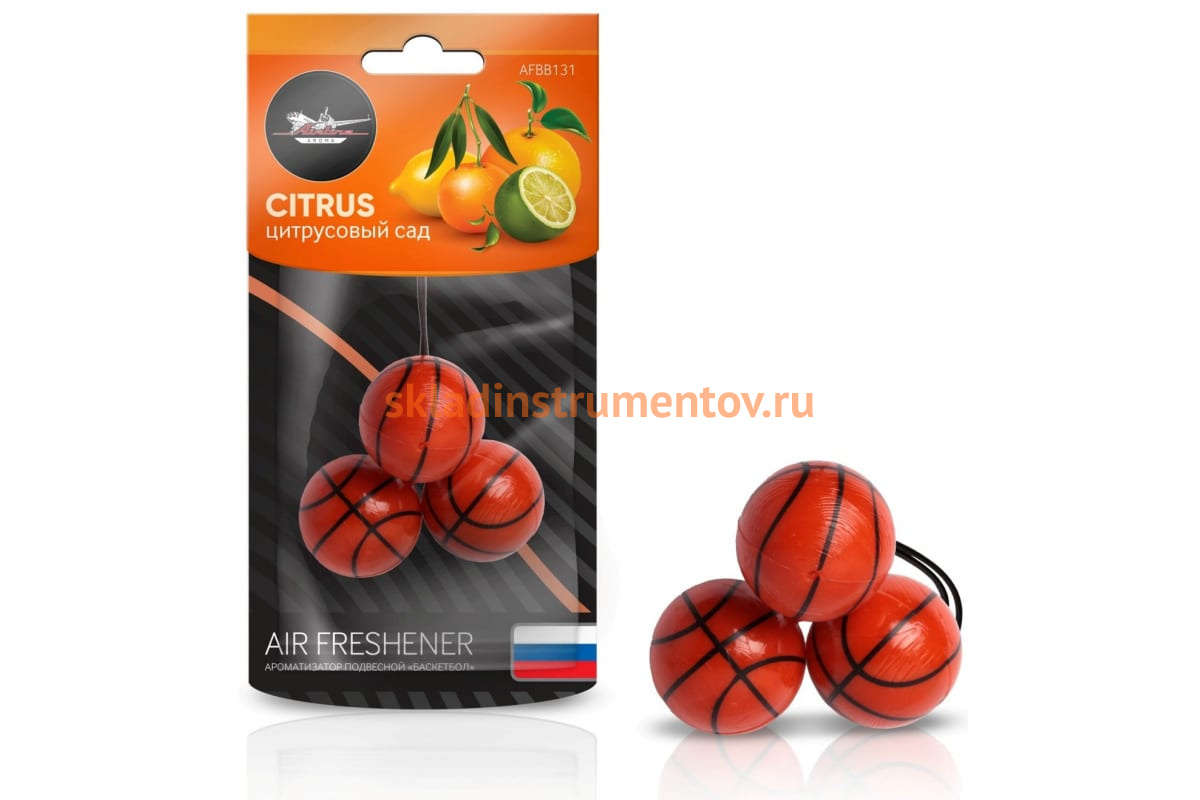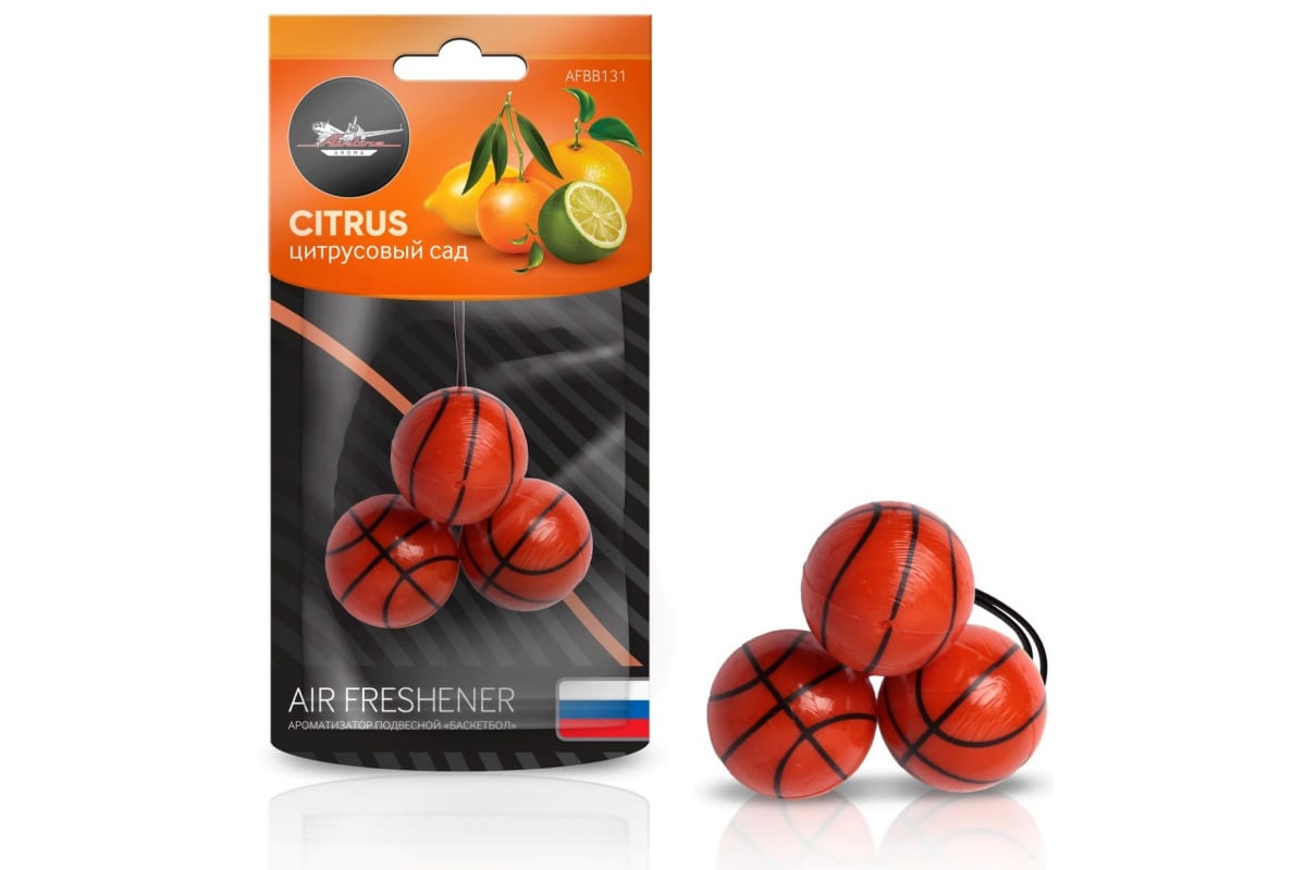 Подвесной ароматизатор Airline Баскетбол цитрусовый сад AFBB131 освежает запах в салоне автомобиля.
