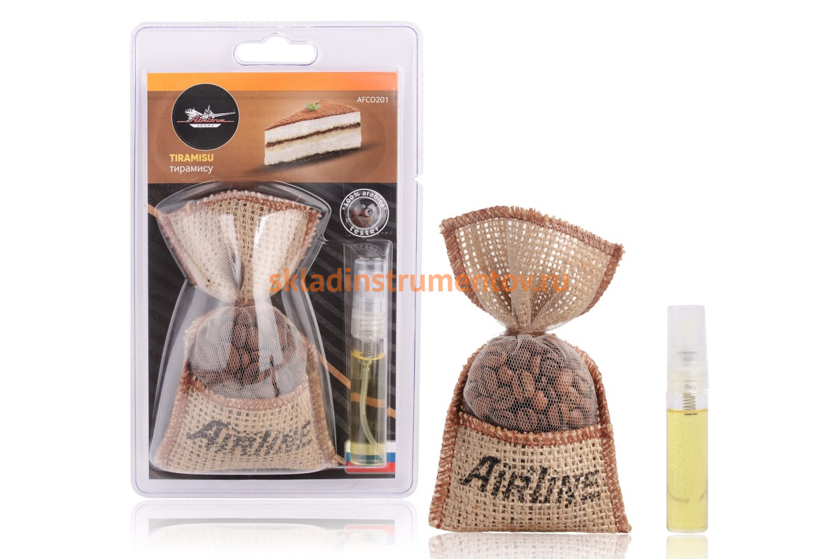Ароматизатор Airline Кофе в мешочке со спреем, тирамису AFCO201 эффективно устраняет неприятные запахи в салоне автомобиля, наполняя его бодрящим ароматом кофе с нотками натуральных компонентов и специй. Поможет создать уютную атмосферу и поднять настроение.