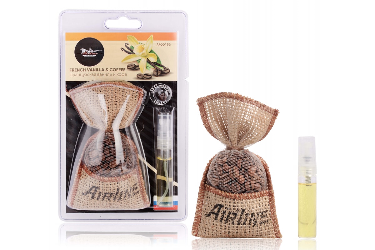 Ароматизатор Airline Кофе в мешочке со спреем, французская ваниль и кофе AFCO196 эффективно устраняет неприятные запахи в салоне автомобиля, наполняя его бодрящим ароматом кофе с нотками натуральных компонентов и специй. Поможет создать уютную атмосферу и поднять настроение.
