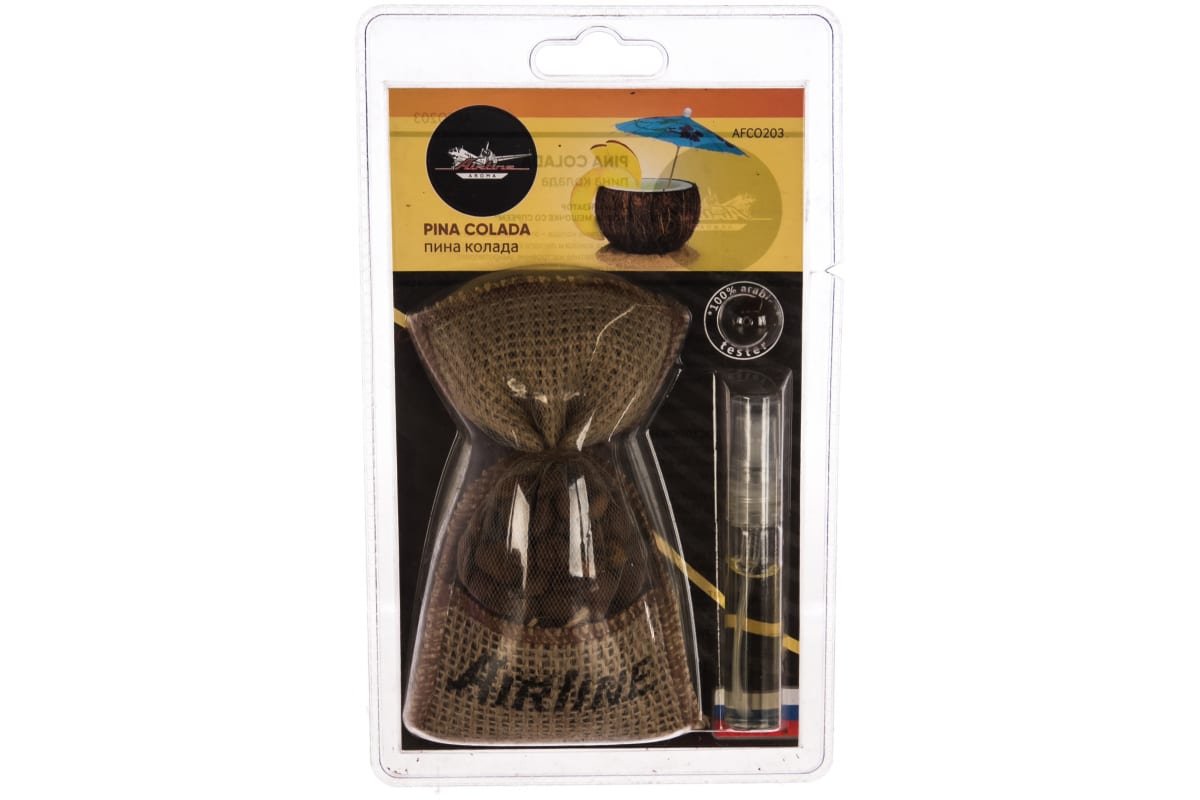 Ароматизатор Airline Кофе в мешочке со спреем, пина колада AFCO203 эффективно устраняет неприятные запахи в салоне автомобиля, наполняя его бодрящим ароматом кофе с нотками натуральных компонентов и специй. Поможет создать уютную атмосферу и поднять настроение.