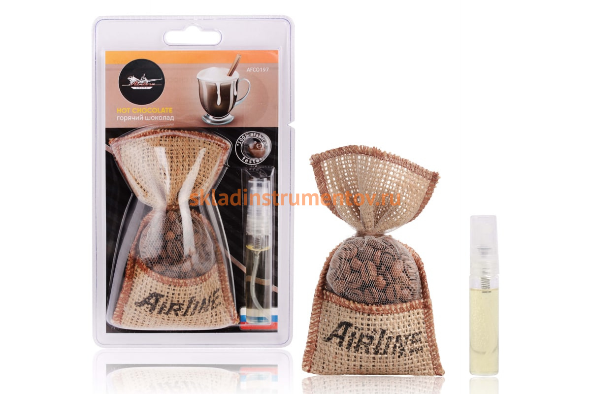 Ароматизатор Airline Кофе в мешочке со спреем, горячий шоколад AFCO197 эффективно устраняет неприятные запахи в салоне автомобиля, наполняя его бодрящим ароматом кофе с нотками натуральных компонентов и специй. Поможет создать уютную атмосферу и поднять настроение.
