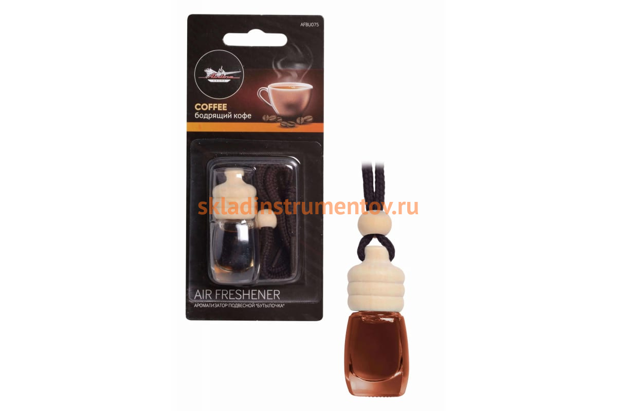 Подвесной ароматизатор Airline Бутылочка бодрящий кофе AFBU075 освежает запах в салоне автомобиля.