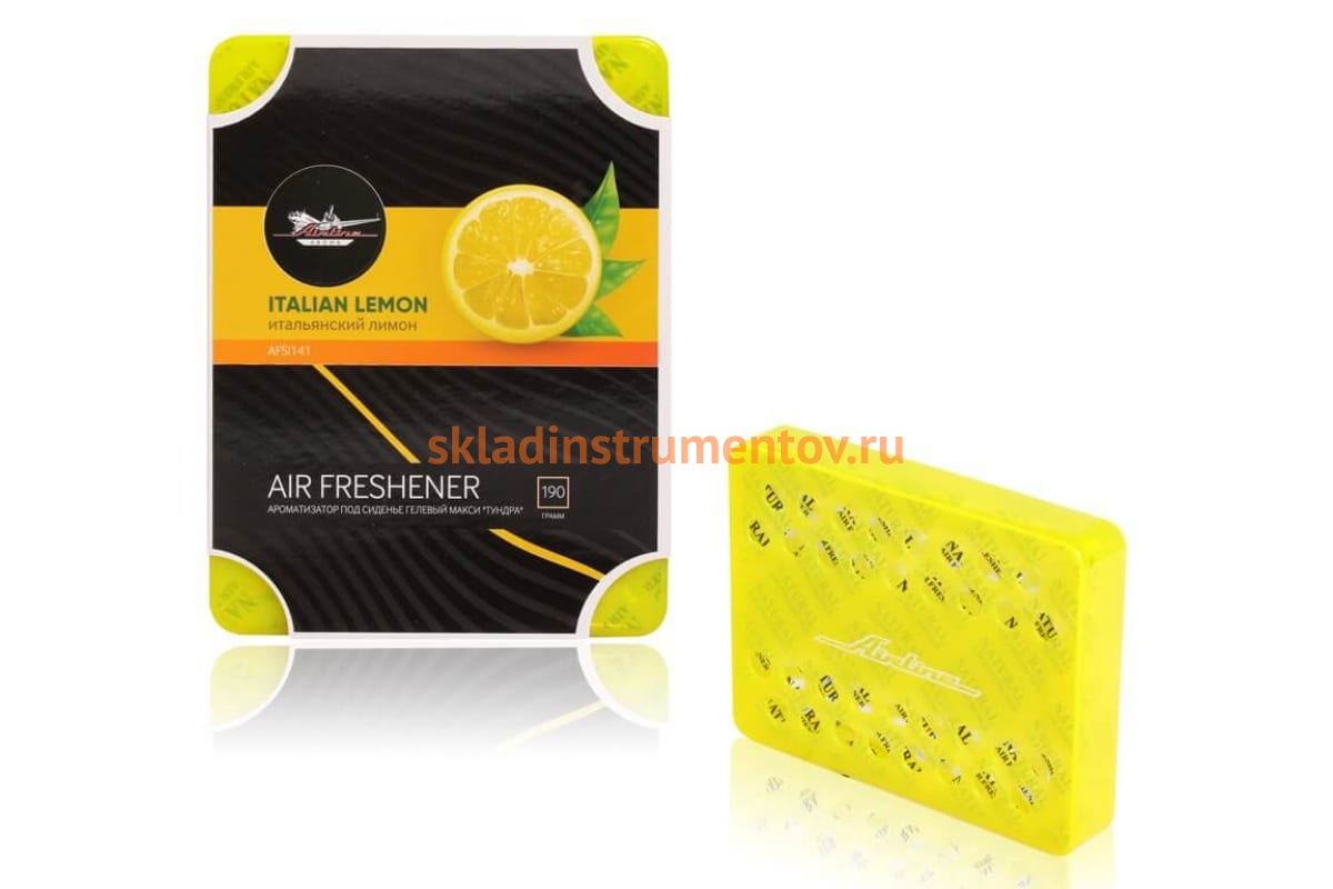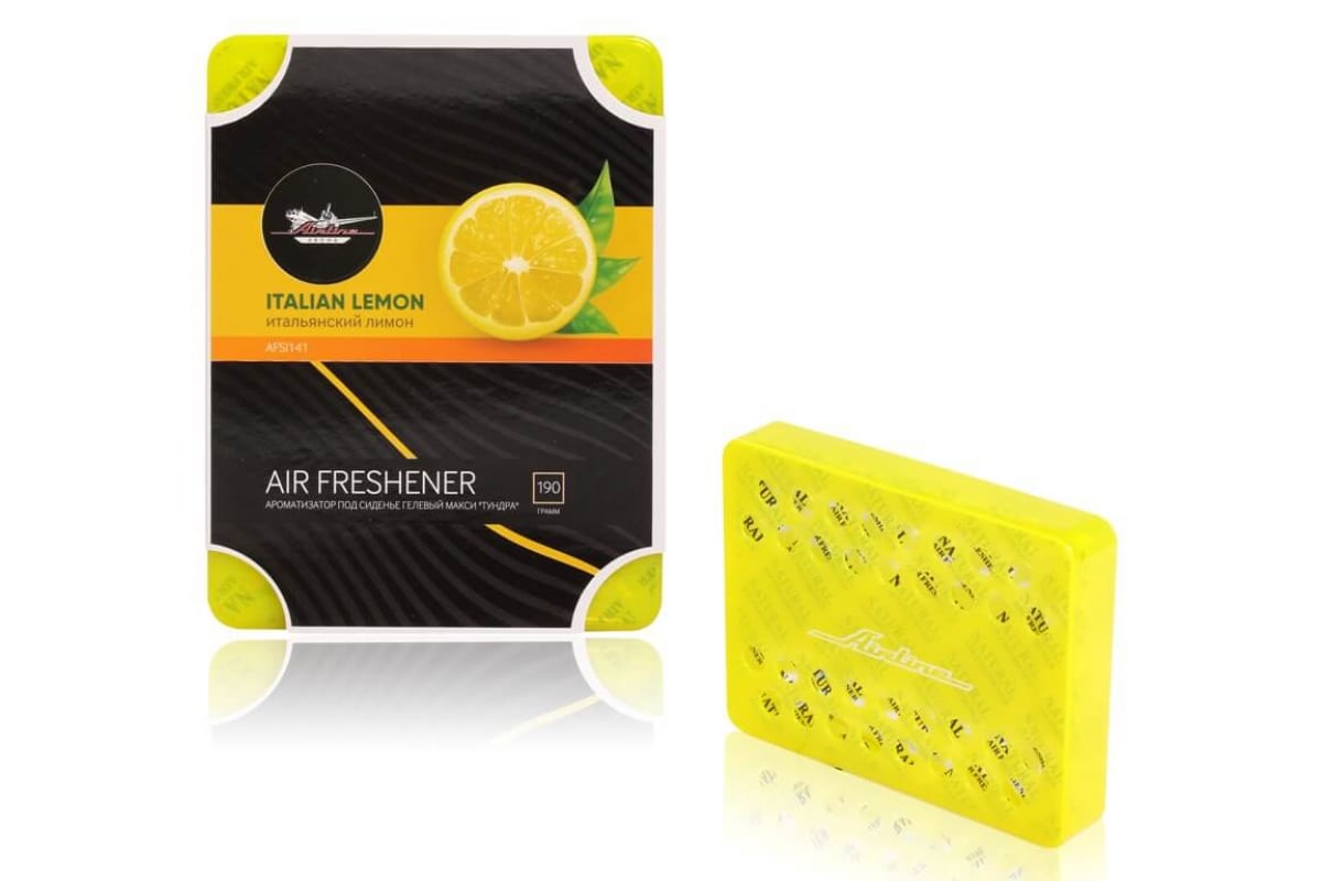 Гелевый ароматизатор под сиденье Airline макси Тундра итальянский лимон AFSI141 устраняет неприятные запахи в салоне автомобиля. Свежий аромат лимона стимулирует работу мозга, помогает сосредоточиться. Вес: 190 г.