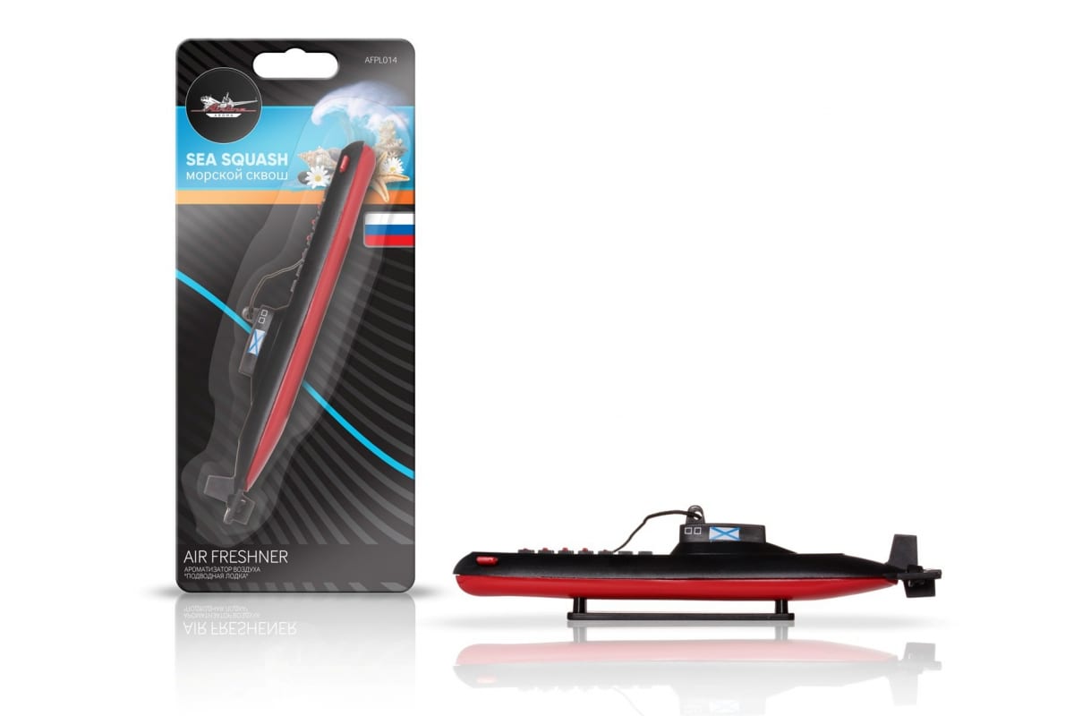 Ароматизатор на панель Airline Подводная лодка, морской сквош AFPL014 наполнит салон автомобиля ароматом бриза и подарит ощущение свежести. Выполнен из полимера, в состав которого введена отдушка. Благодаря такой технологии приятный запах сохранится на длительное время.