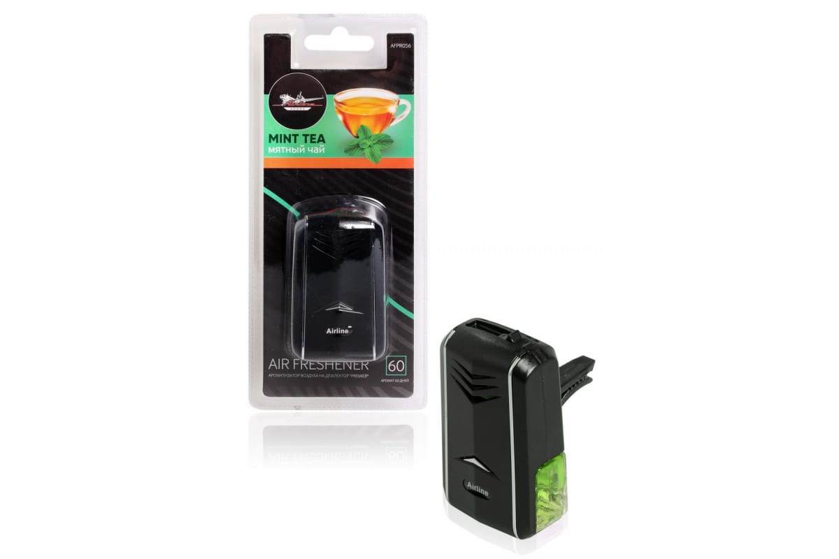 Ароматизатор на дефлектор Airline Premier мятный чай AFPR056 с регулировкой уровня аромата работает на протяжении 60 дней. Представляет собой стеклянный флакон с парфюмированной жидкостью, заключенный в пластиковый корпус. Аромат мяты освежает, стимулирует работу мозга.