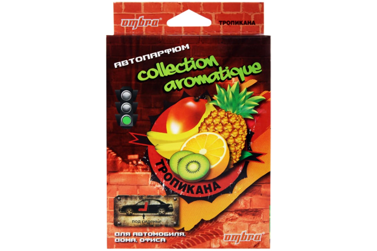 Ароматизатор под сиденье "Collection Aromatique" тропикана OMBRA CA-01 устраняет неприятные запахи, освежает воздух в салоне автомобиля и наполняет его тропическим ароматом. Незаметно располагается под сидением автомобиля, поэтому не нарушает интерьер салона и не привлекает к себе лишнего внимания. Ароматизатор на пенной основе эффективно действует как в жаркие летние дни, так и в морозных погодных условиях. Не содержит вредных для организма человека компонентов. Может использоваться дома и в офисе. Отлично справляется со своей задачей и равномерно испаряет приятный аромат в течение всего срока эксплуатации.