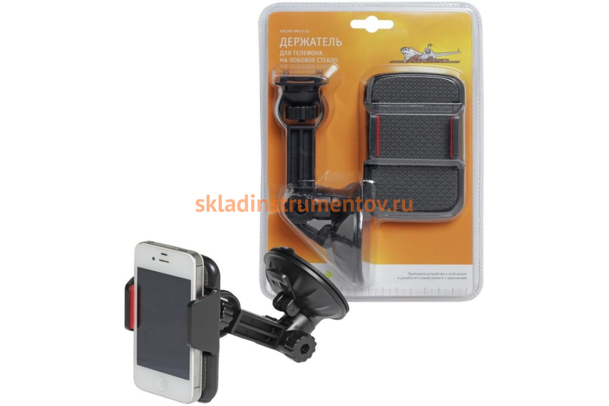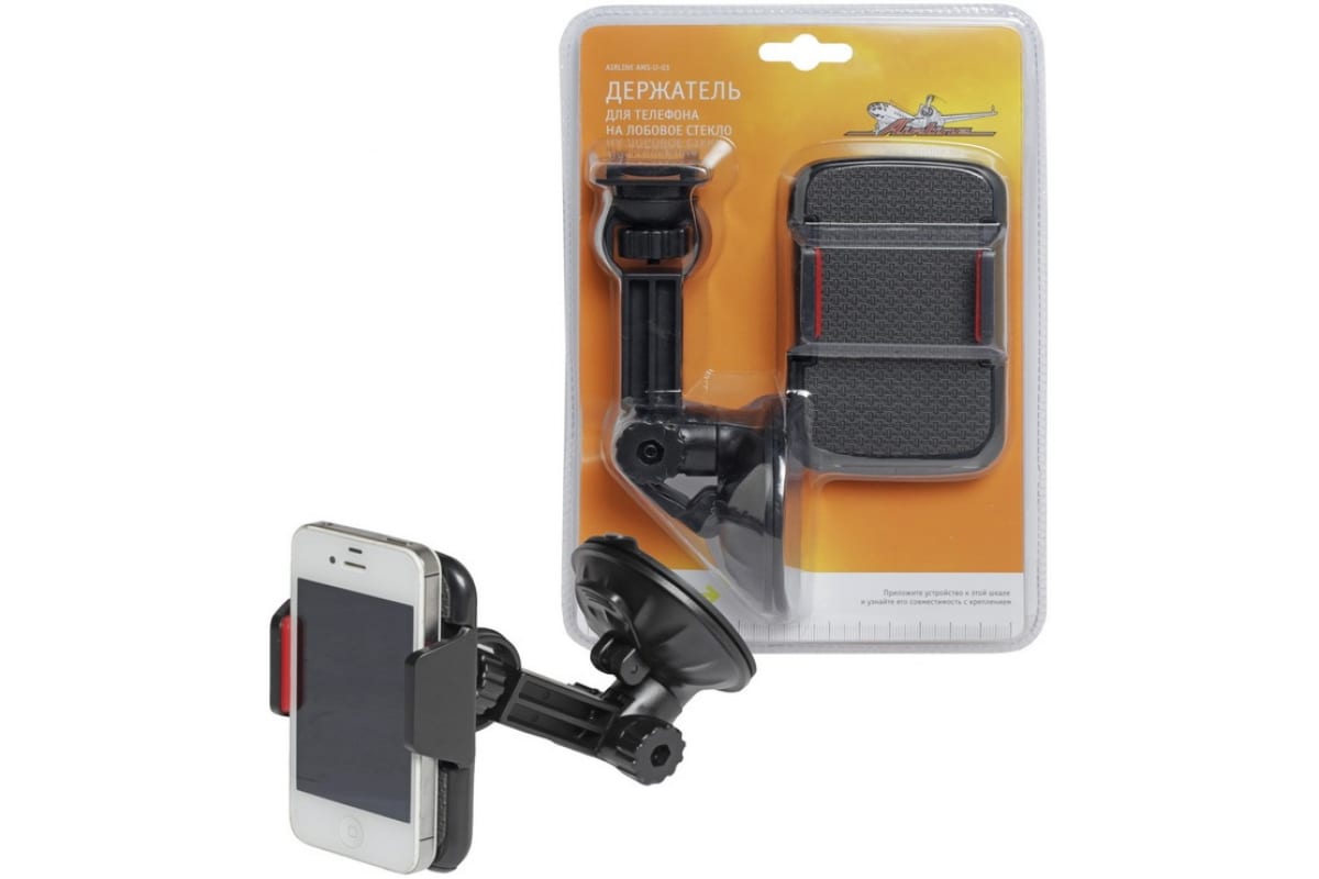 Держатель для телефона на лобовое стекло на короткой штанге Airline AMS-U-03 используется для закрепления мобильного гаджета или навигатора для использования в процессе движения на автомобиле. Изделие надежно крепится на приборную панель или лобовое стекло при помощи присоски.