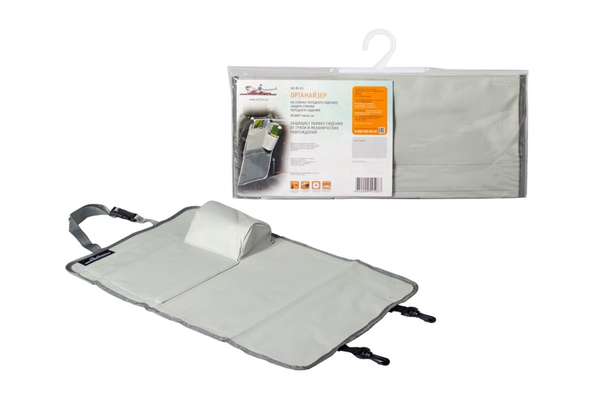 Органайзер на спинку переднего сидения Airline AO-BS-03 позволяет не только держать необходимые в дороге вещи в одном месте, но и защитить поверхность спинки от различных загрязнений и повреждений. Размеры изделия дают возможность хранения журналов, дорожных карт, а также других крупногабаритных вещей. Выполнен из легкомоющегося высокопрочного материала.