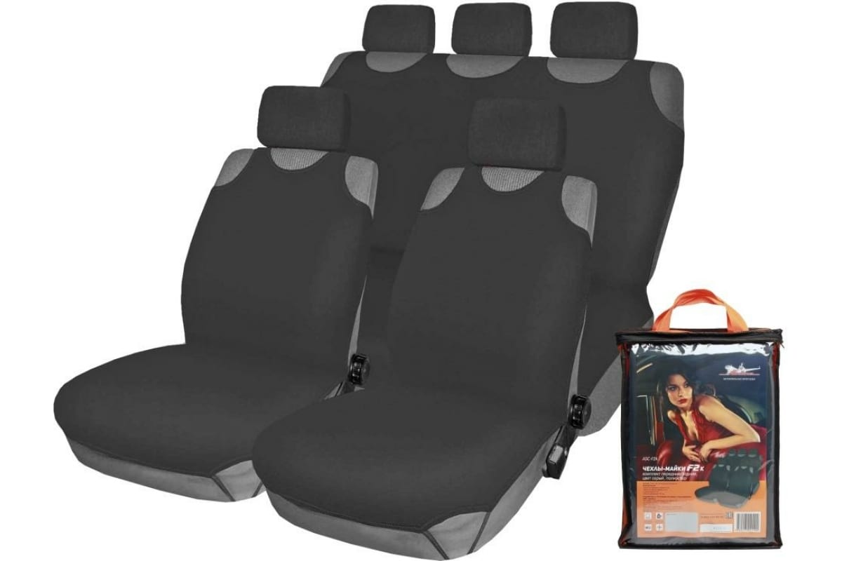 Чехлы-майки (передние/задние, серый цвет, полиэстер) Airline ASC-F2k имеют особую форму, которая закрывает наиболее используемые поверхности сидений и защищает обивку от загрязнений, истирания и выцветания. Модель изготавливается из 100% полиэстера темно-серого цвета, что гарантирует износостойкость и долговечность. Для удобства установки изделий в комплект поставки входит набор крючков.
