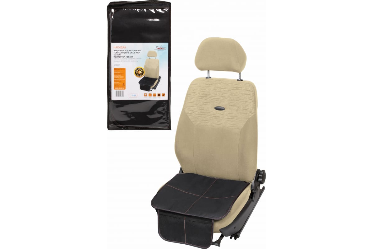 —Защитная накидка под детское автокресло Airline 48*48 см, с карманом, полиэстер, черный AO-CS-01—