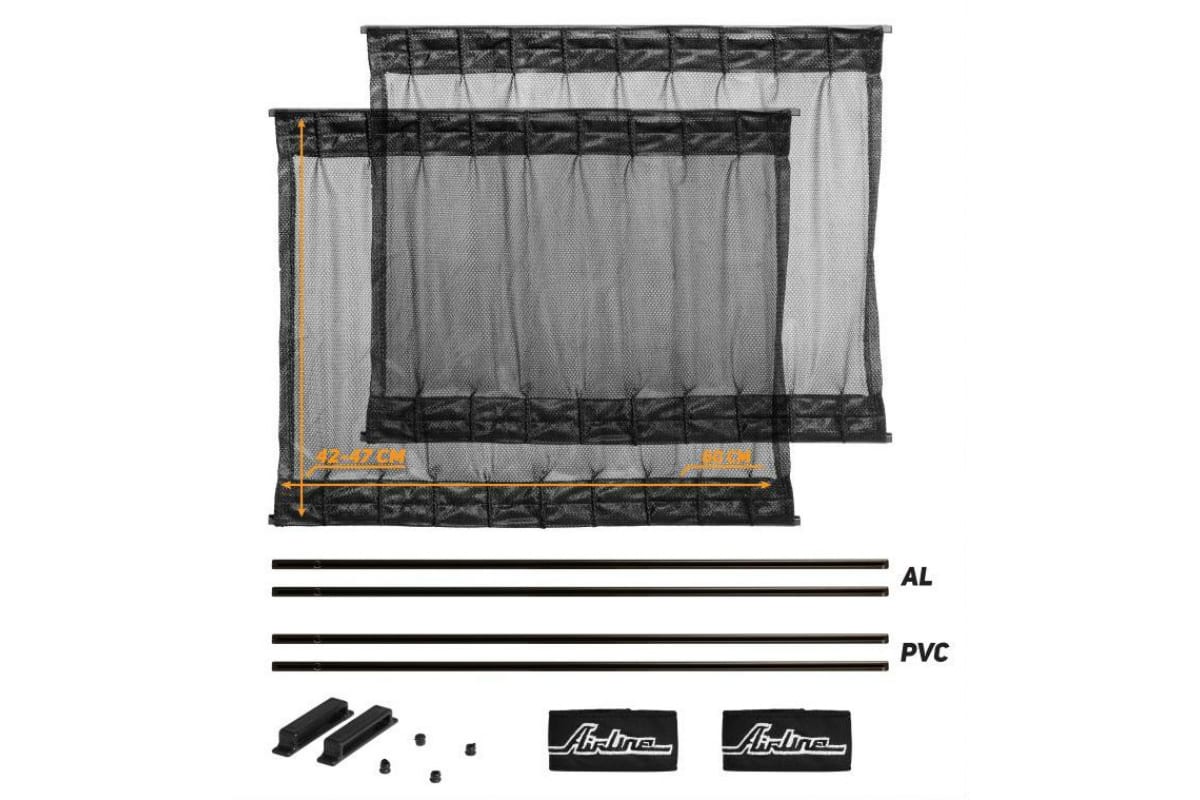 Cолнцезащитные раздвижные шторки (60х42-47 см, черный цвет) Airline ASPS-S-09 отличаются удобством эксплуатации и большой площадью покрытия, что гарантирует полную конфиденциальность пассажирам. Премиальный вид изделия позволяет украсить и придать домашний уют, комфорт салону. В комплект поставки входят все необходимые элементы, которые дают возможность легко и быстро осуществить монтаж аксессуаров.