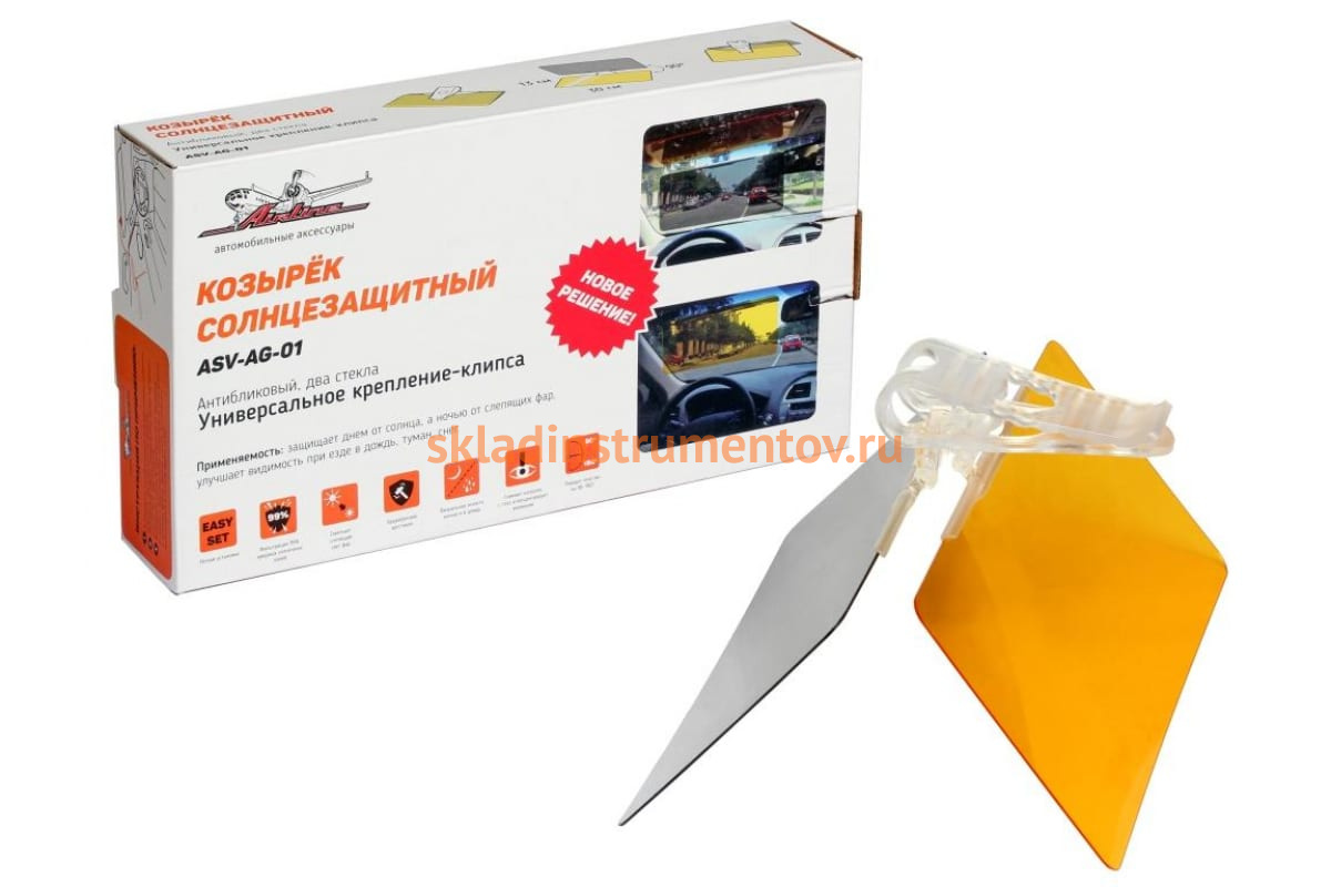 Солнцезащитный, антибликовый, козырек Airline ASV-AG-01 (два стекла) крепится в салоне автомобиля и служит для защиты водителя от солнечных лучей, а также обеспечивает хорошую видимость во время движения. Модель изготавливается из ударопрочного и износоустойчивого материала - полиметилметакрилата и пластика. Пластины поворачиваются на угол от 90 до 180 градусов.