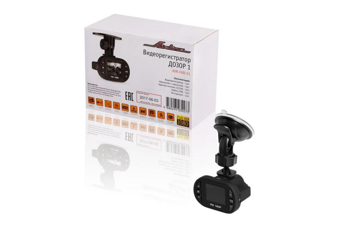 Видеорегистратор FHD 1080p Airline ДОЗОР 1 AVR-FHD-01 широко используется автомобилистами для защиты своих интересов в случае дорожно-транспортного происшествия. Для записи видео необходимо дополнительно приобрести карту памяти Micro SD. Данная модель работает от встроенного li-ion аккумулятора емкостью 260 мА*ч, который заряжается от прикуривателя бортовой сети 12/24 В. Регистратор оснащен детектором движения. Устройство имеет небольшие размеры (86х50х32 мм) и не закрывает обзор дороги для водителя. К лобовому стеклу видеорегистратор крепится легко и быстро при помощи надежной вакуумной присоски. На матовой поверхности не остаются следы от пальцев.