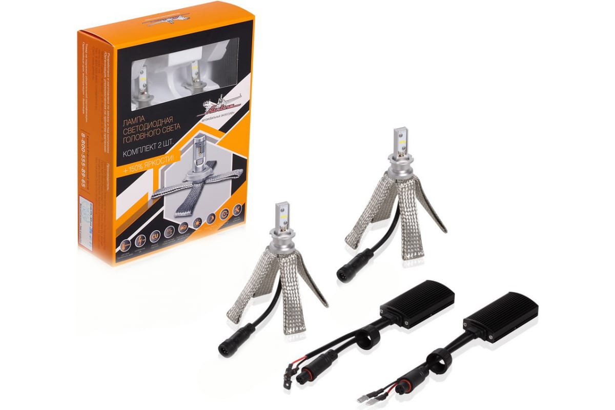 Светодиодная лампа H3 Airline PREMIUM LED 12В, 18Вт, 6500К, 5000Лм, белая, 2шт ALED-H3-02