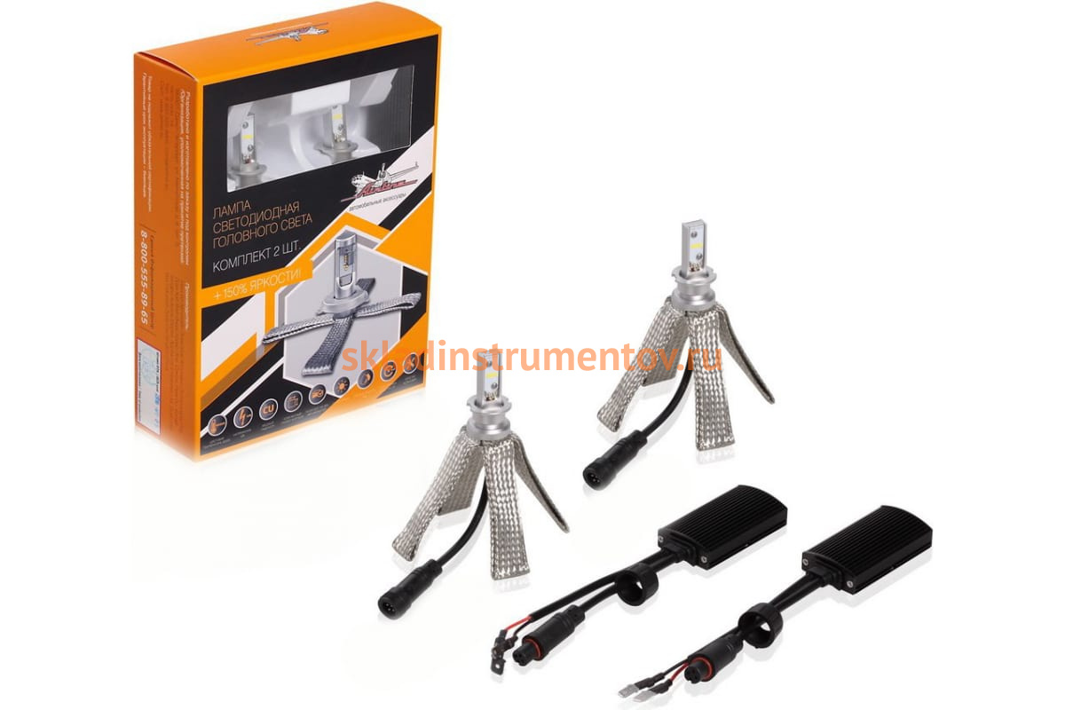 —Светодиодная лампа H3 Airline PREMIUM LED 12В, 18Вт, 6500К, 5000Лм, белая, 2шт ALED-H3-02