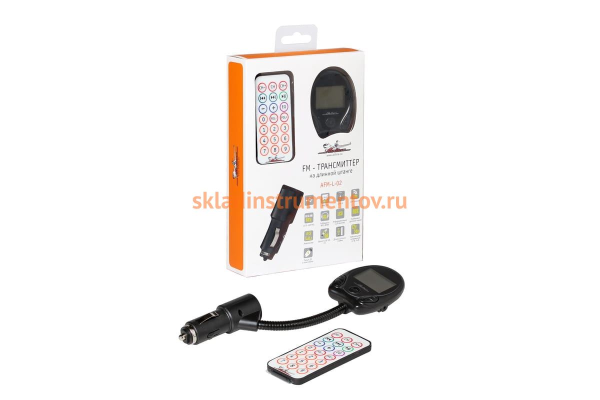 FM-трансмиттер на длинной штанге Airline AFM-L-02 - это простое в использовании устройство, позволяющее осуществлять прослушивание цифровых аудио файлов (MP3, WMA и т. д.) в автомобилях старого образца, оснащенных только радиоприемниками. Для удобства эксплуатации в конструкции прибора предусмотрен цифровой дисплей (LCD). Подключается к прикуривателю.