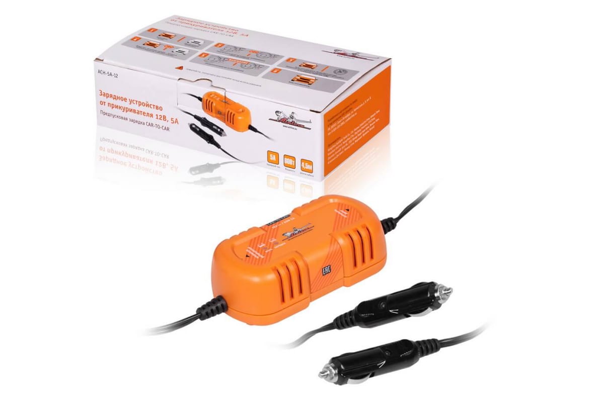 Зарядное устройство от прикуривателя Airline 12В, 5А предпусковая зарядка CAR-TO-CAR ACH-5A-12 предназначен для заряда аккумулятора без снятия. Отличается удобством и легкостью подключения благодаря длинному кабелю, подключаемому в гнезда прикуривателя.
