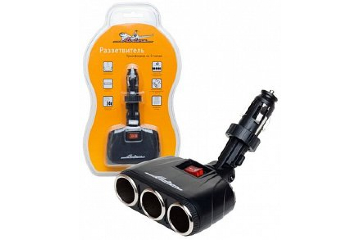 —Прикуриватель-разветвитель трансформер на 3 гнезда Airline штекер-фиксатор ASP-3T-09—