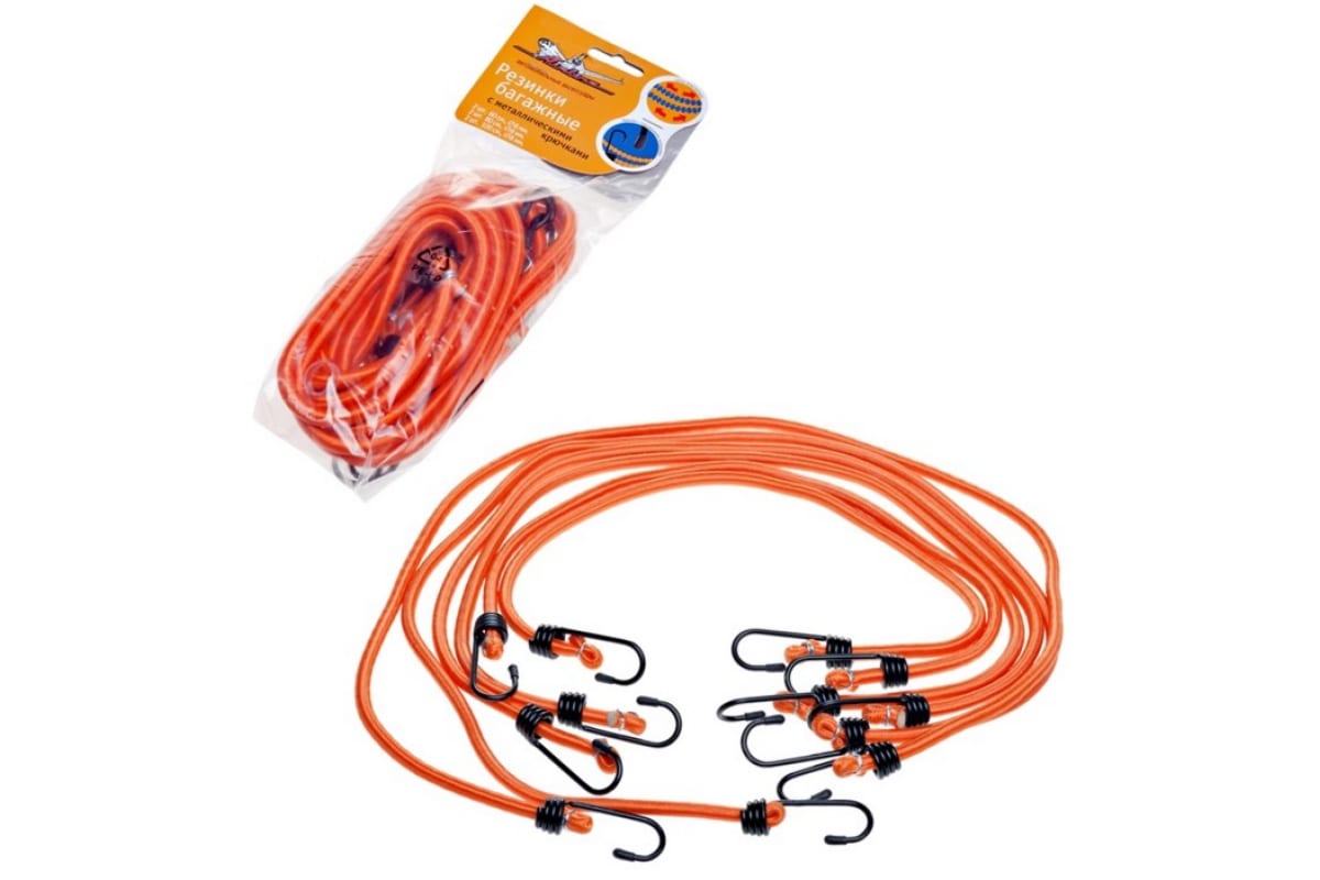 Набор резинок с металлическими крючками (6 штук, D-8 мм) Airline AS-R-04 позволяет закреплять грузы разных размеров. Прочные шнуры гарантируют безопасную транспортировку без риска падения или смещения перевозимого объекта. Переплетенные нити из резины покрываются износостойким полиэстером. Металлические крюки выдерживают значительные физические нагрузки.