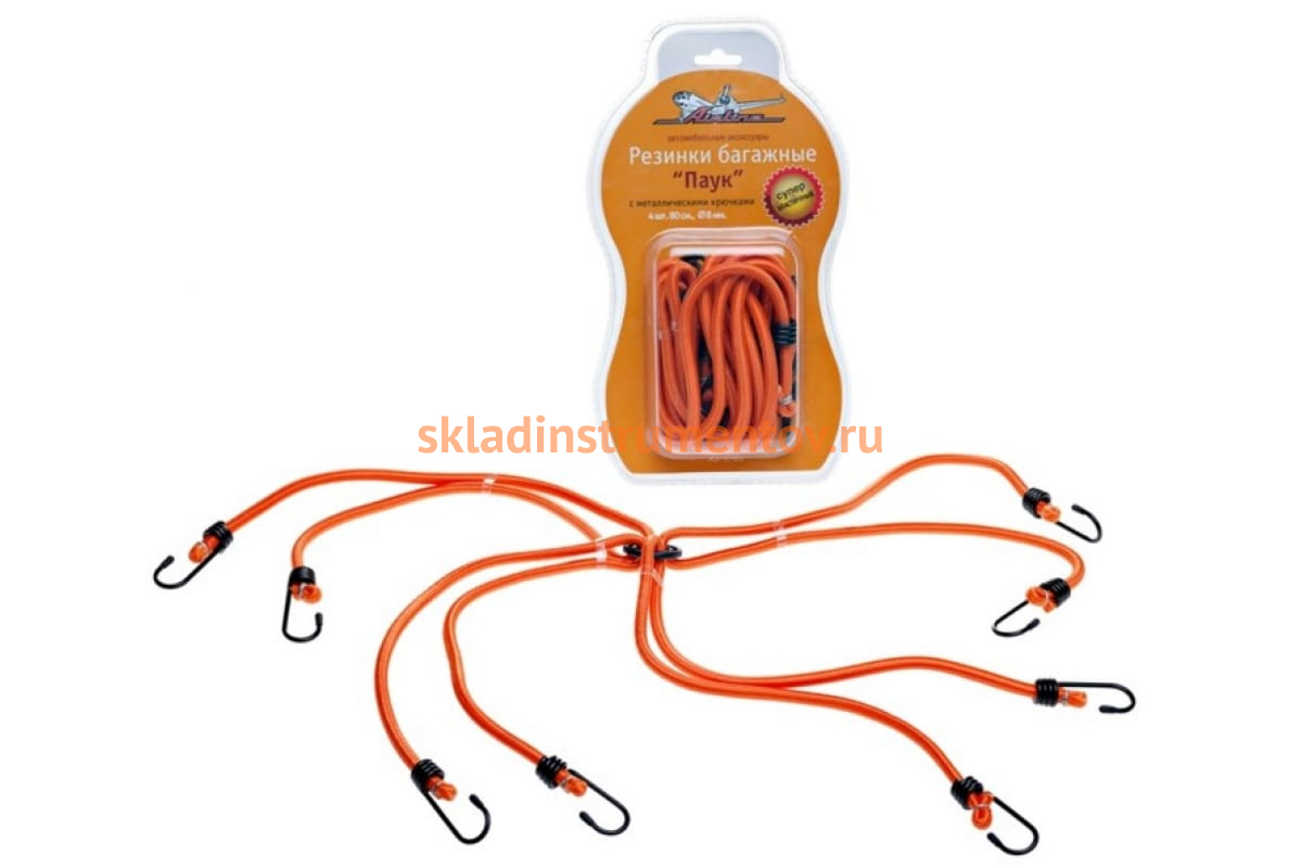Набор резинок с металлическими крючками (Паук, 4 штуки, 80 см, D-8 мм) Airline AS-R-05 представляет собой соединенные между собой шнуры для фиксации крупногабаритного груза. 8 крюков позволяют крепить транспортируемый объект со всех сторон, что снижает риск его падения в случае тряски. Покрытие шнуров выполнено из прочного полиэфира.