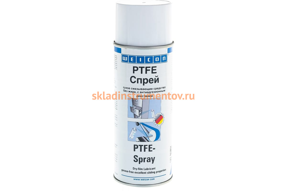 Сухая смазка на основе тефлона 400 мл WEICON PTFE wcn11300400 быстро наносится и не содержит силикона. Это обеспечивает надежную защиту всех подвижных деталей.