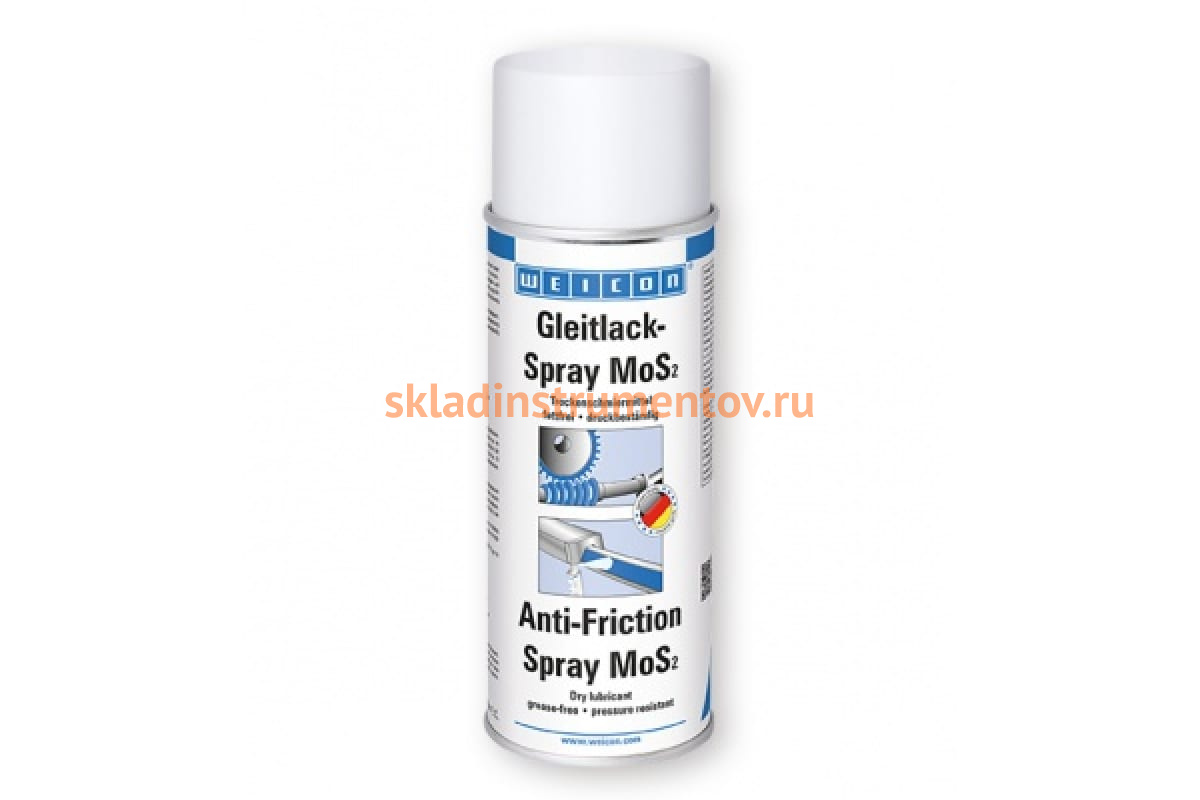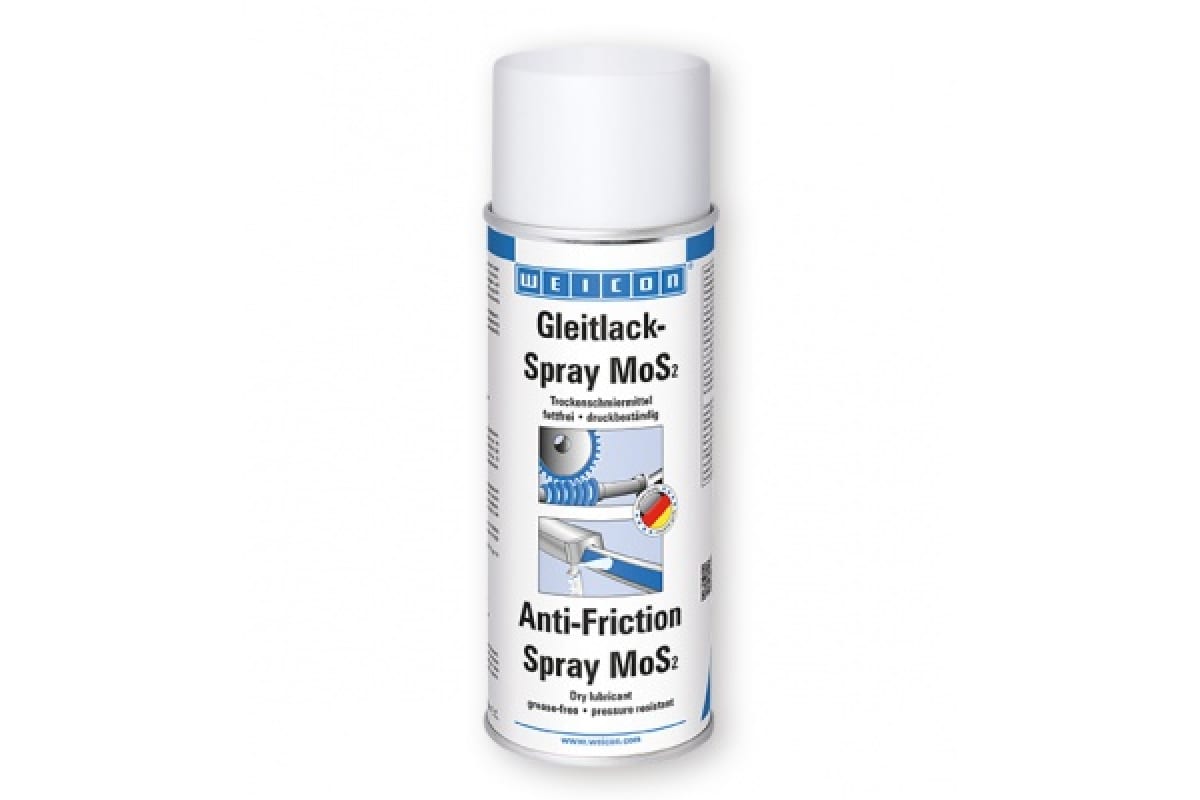 Антифрикционный спрей с молибденом предназначен для смазки рельс скольжения и направляющих, конвейерных лент, конвейерных роликов и желобов, используется в качестве покрытия на штамповочном инструменте, в изделиях погрузочного оборудования вместо антиадгезива и везде, где не допускается или нежелательно использование масла или консистентной смазки. Спрей представляет собой обезжиренный, сухой, смазочный материал с высоким давлением и термостойкостью от -185 ° C (-301 ° F) до + 400 ° C (+ 752 ° F). Устойчив к маслам, жирам и химикатам, к воздействию рентгеновских и лазерных лучей.